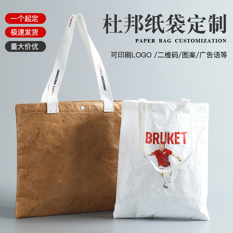 杜邦纸袋定 制印logo加急防水洗单肩大容量购物袋牛皮纸袋环保袋