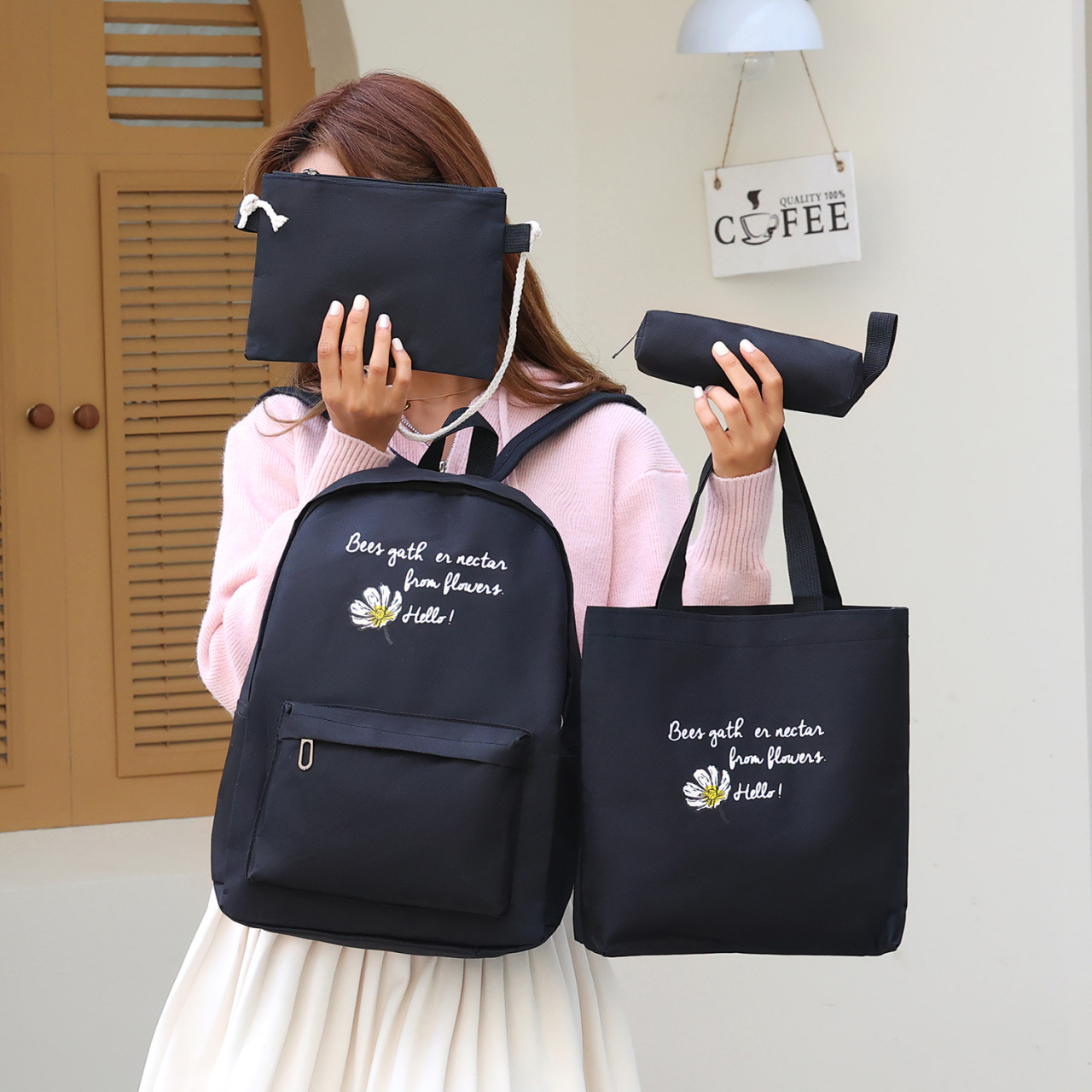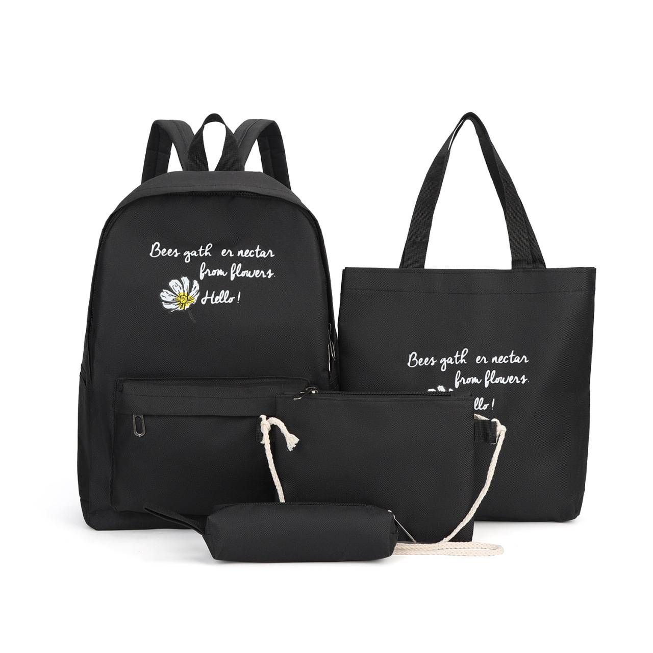 厂家直销批发双肩背包帆布休闲四件套背包休闲学院风学生书包跨境