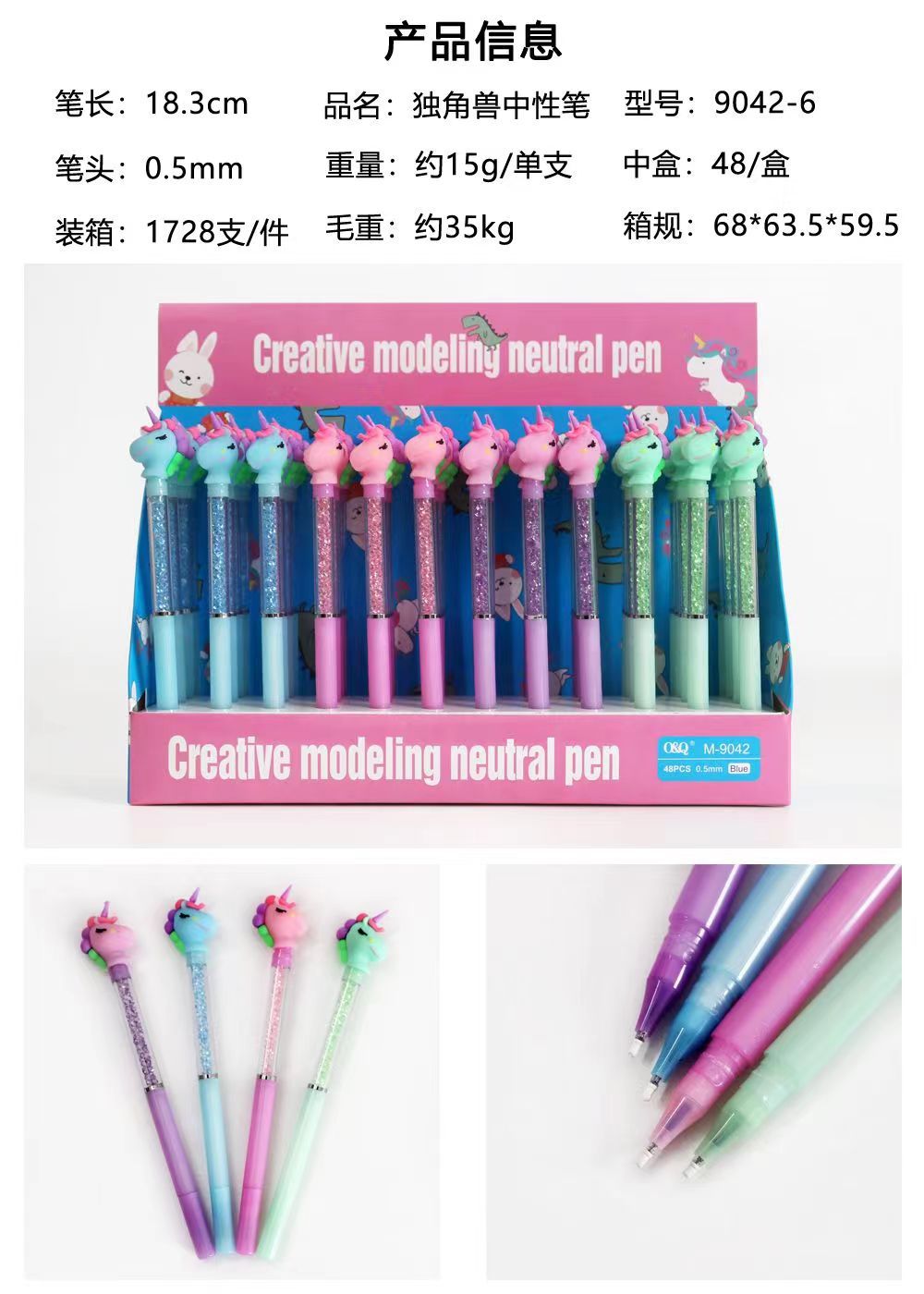 可爱小清新糖果色独角兽恐龙中性笔 创意卡通书写学生钻石签字笔