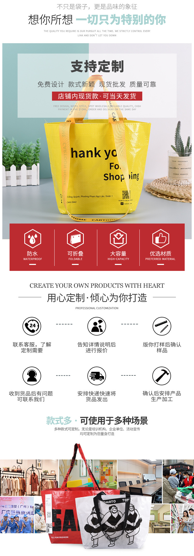 编织手提袋制定PP覆膜logo彩印购物文创环保袋手提礼品广告蛇皮袋