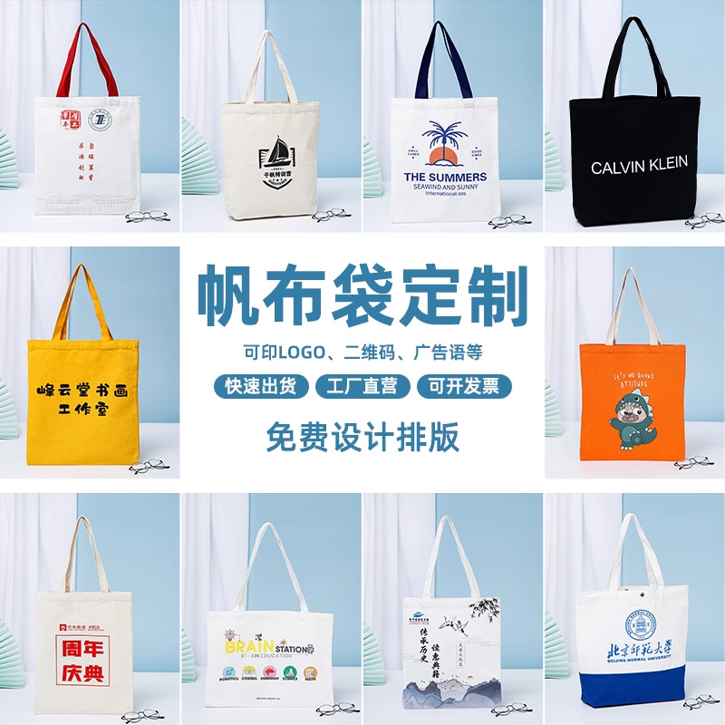帆布袋定制手提袋购物宣传广告袋彩色印刷斜挎棉布包环保袋印logo