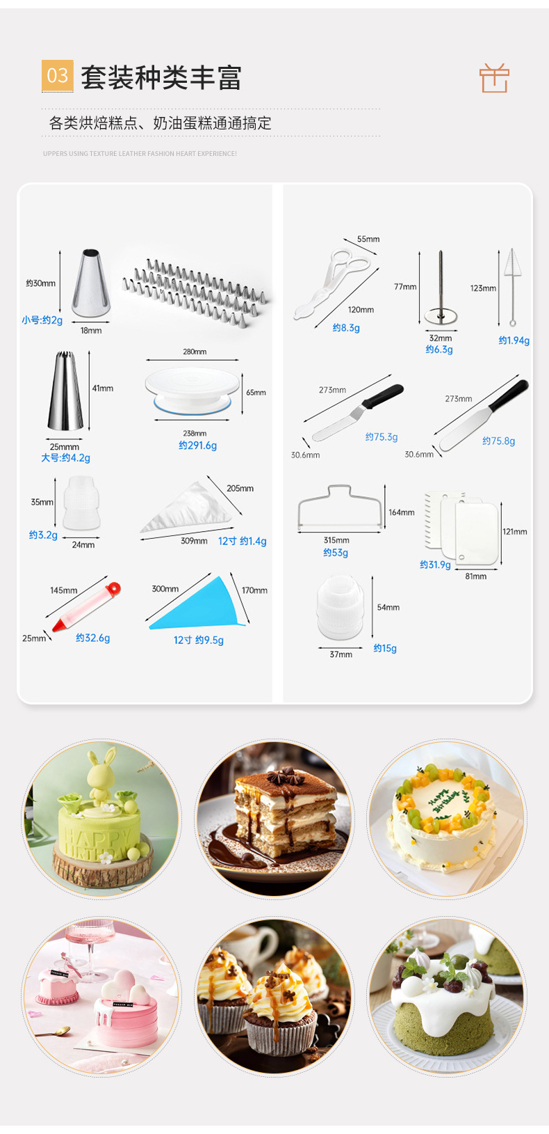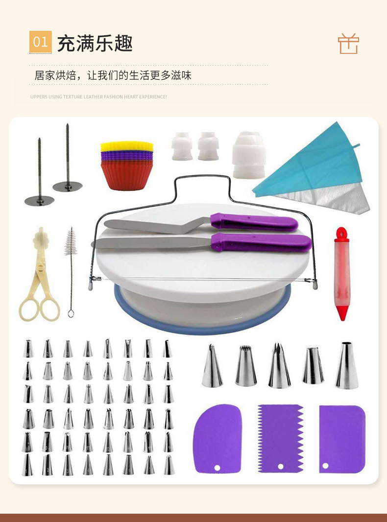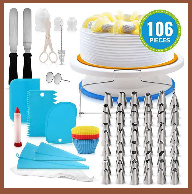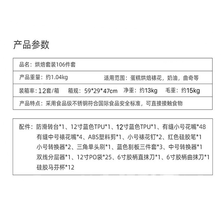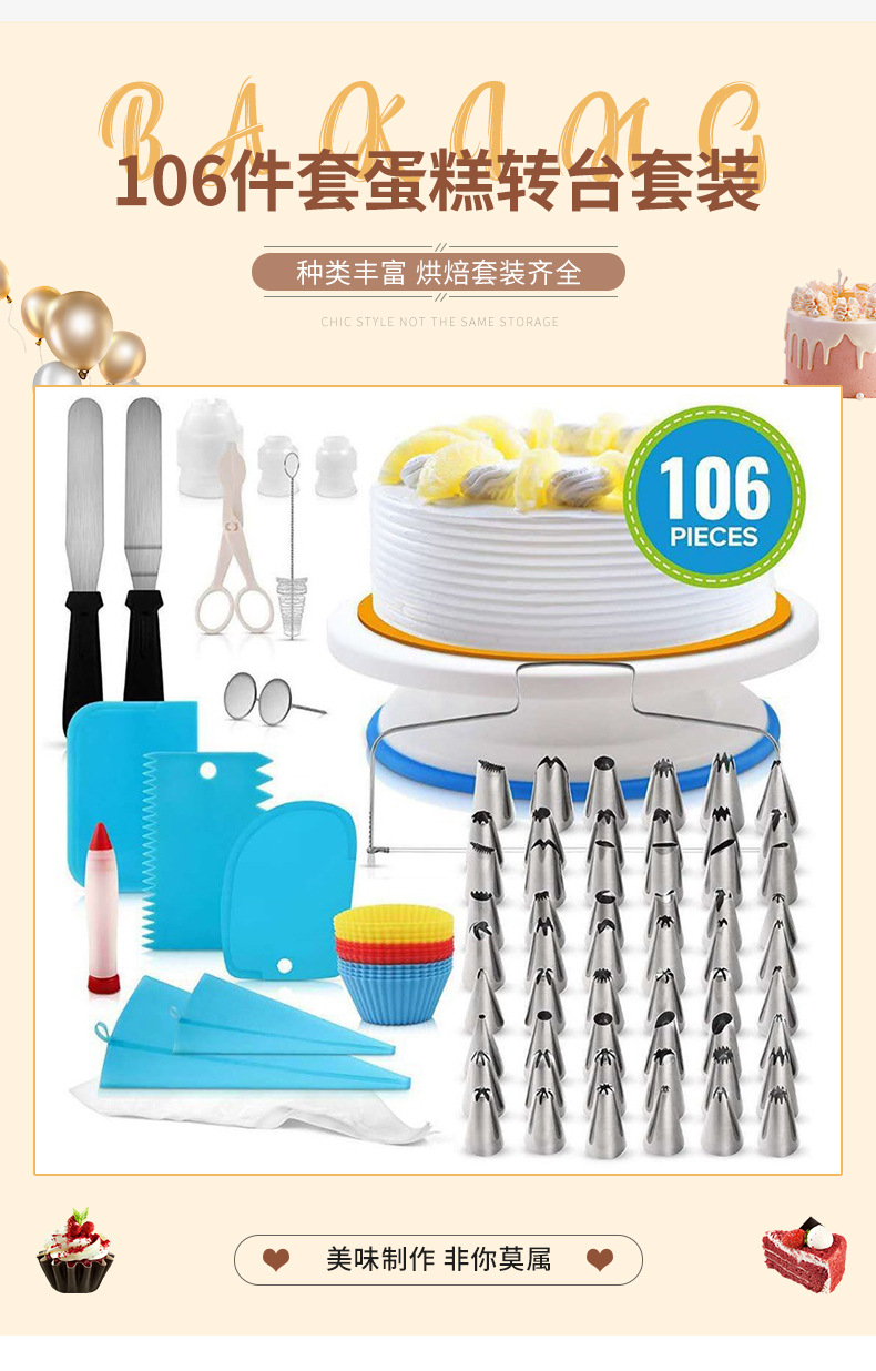 亚马逊热卖106件套蛋糕转台套装裱花嘴TPU裱花袋硅胶杯烘焙工具