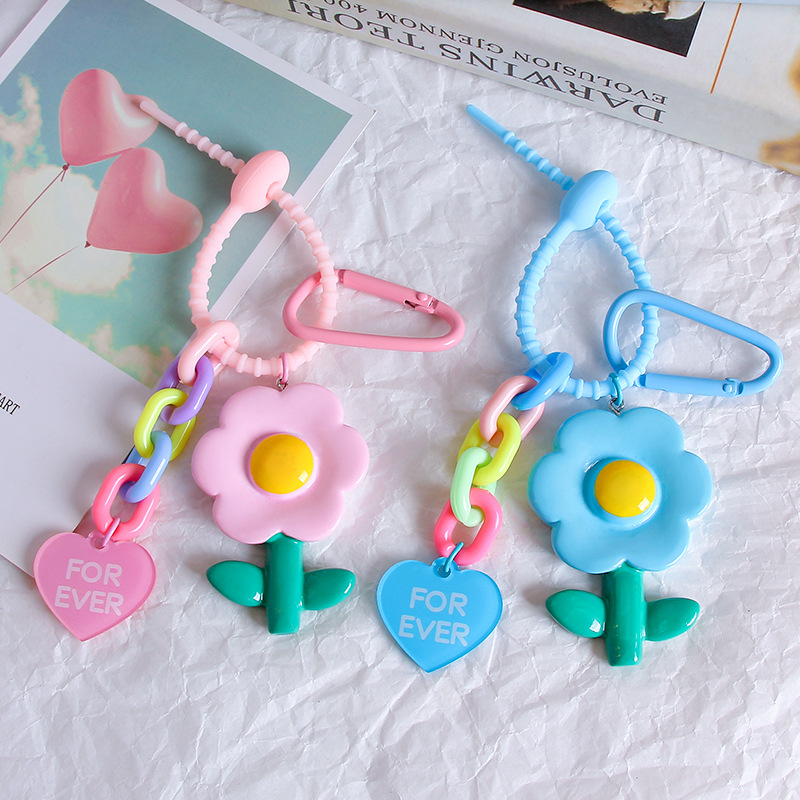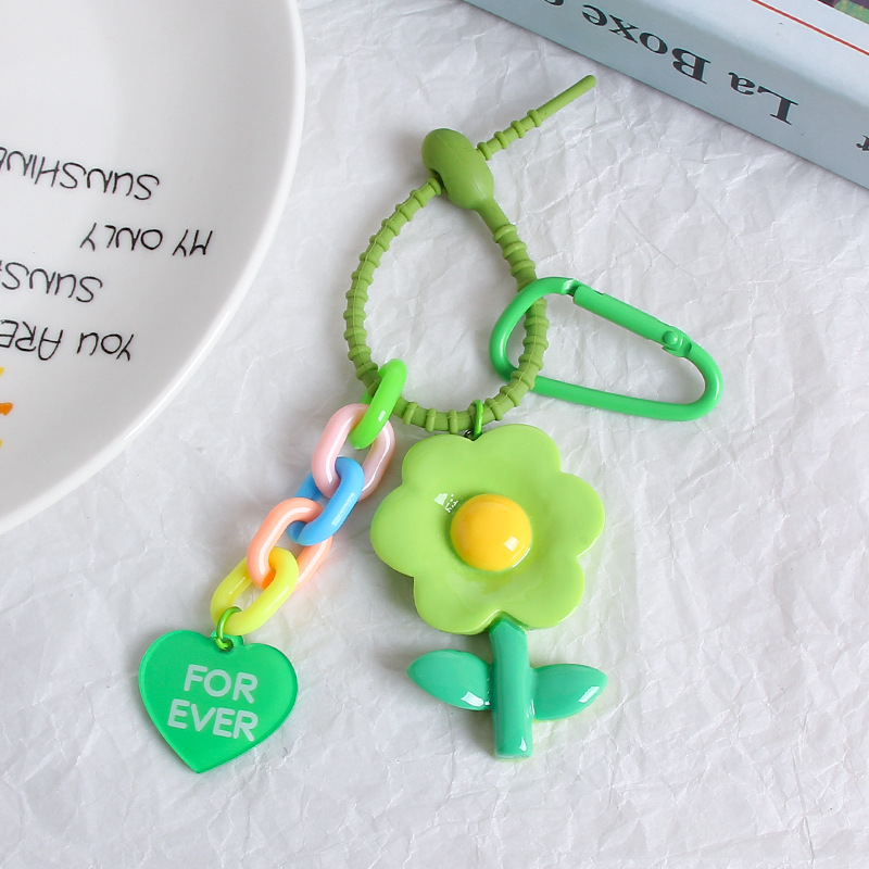 ins树脂花朵钥匙扣创意个性链条爱心硅胶绳包包挂件时尚车钥匙链