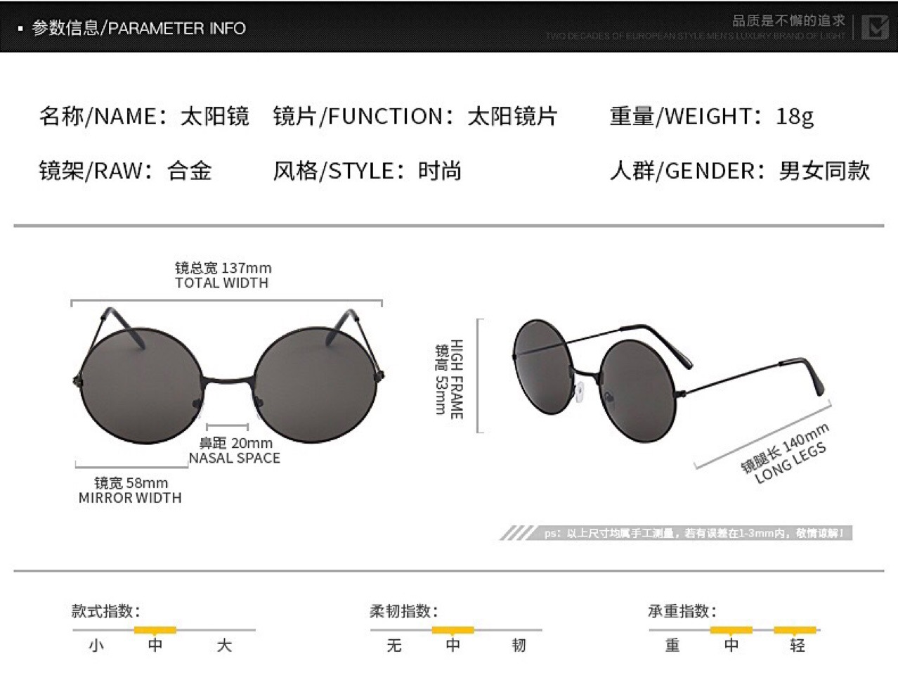 金属复古圆框太阳镜 圆形伴郎团太子墨镜 婚庆节目演出表演眼镜