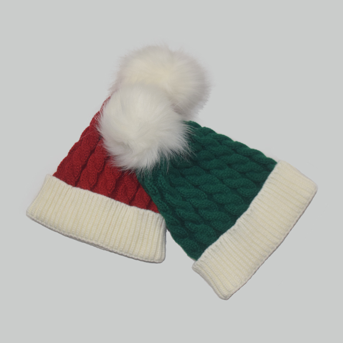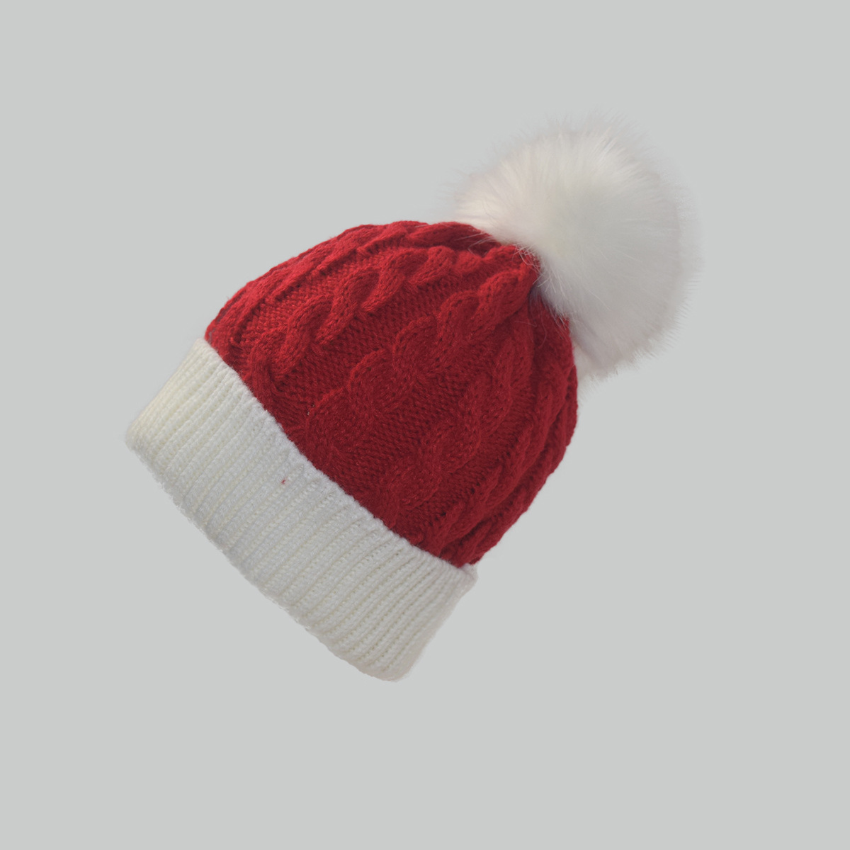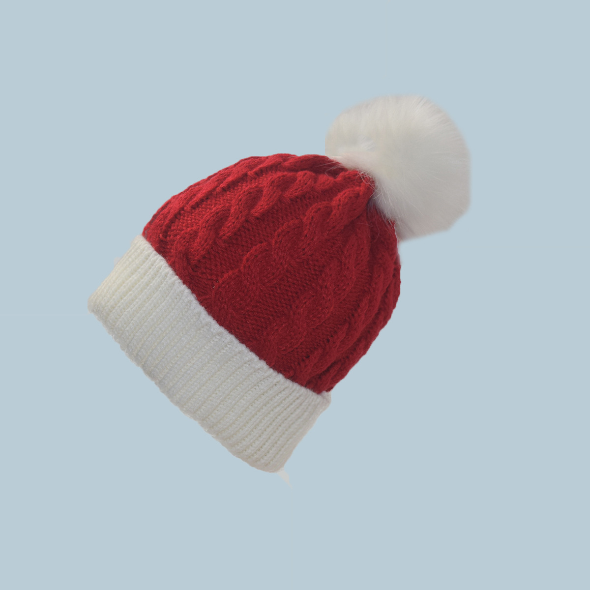 跨境外贸毛线帽子女秋冬季圣诞节百搭红色喜庆保暖礼物保暖针织帽