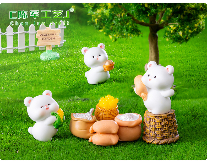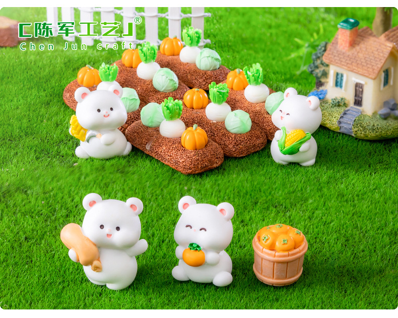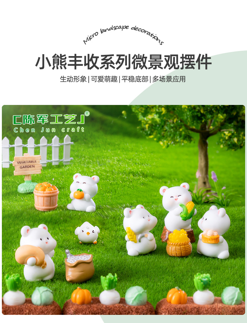 微景观创意可爱丰收小熊公仔 苔藓菜园艺DIY装饰品配件桌面小摆件