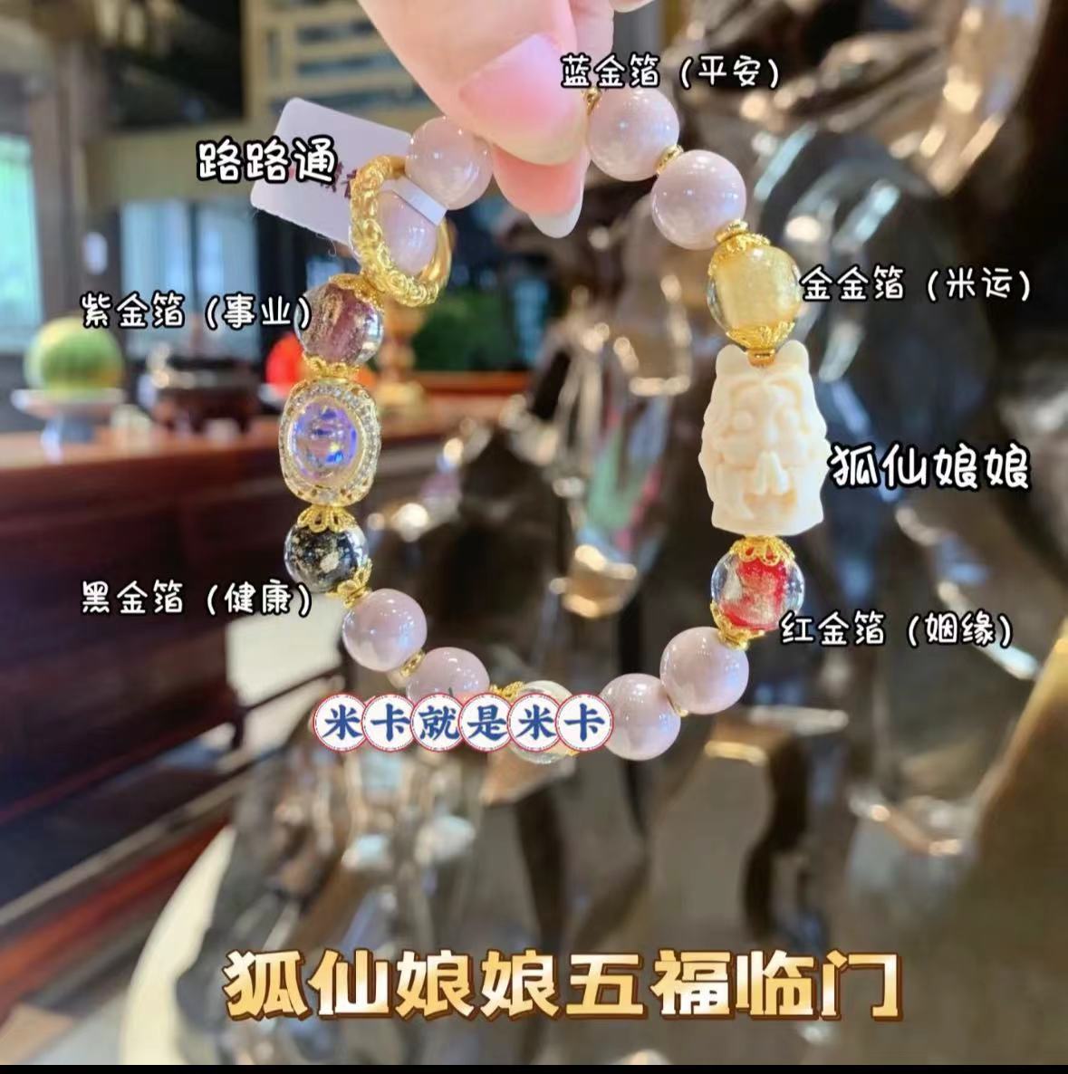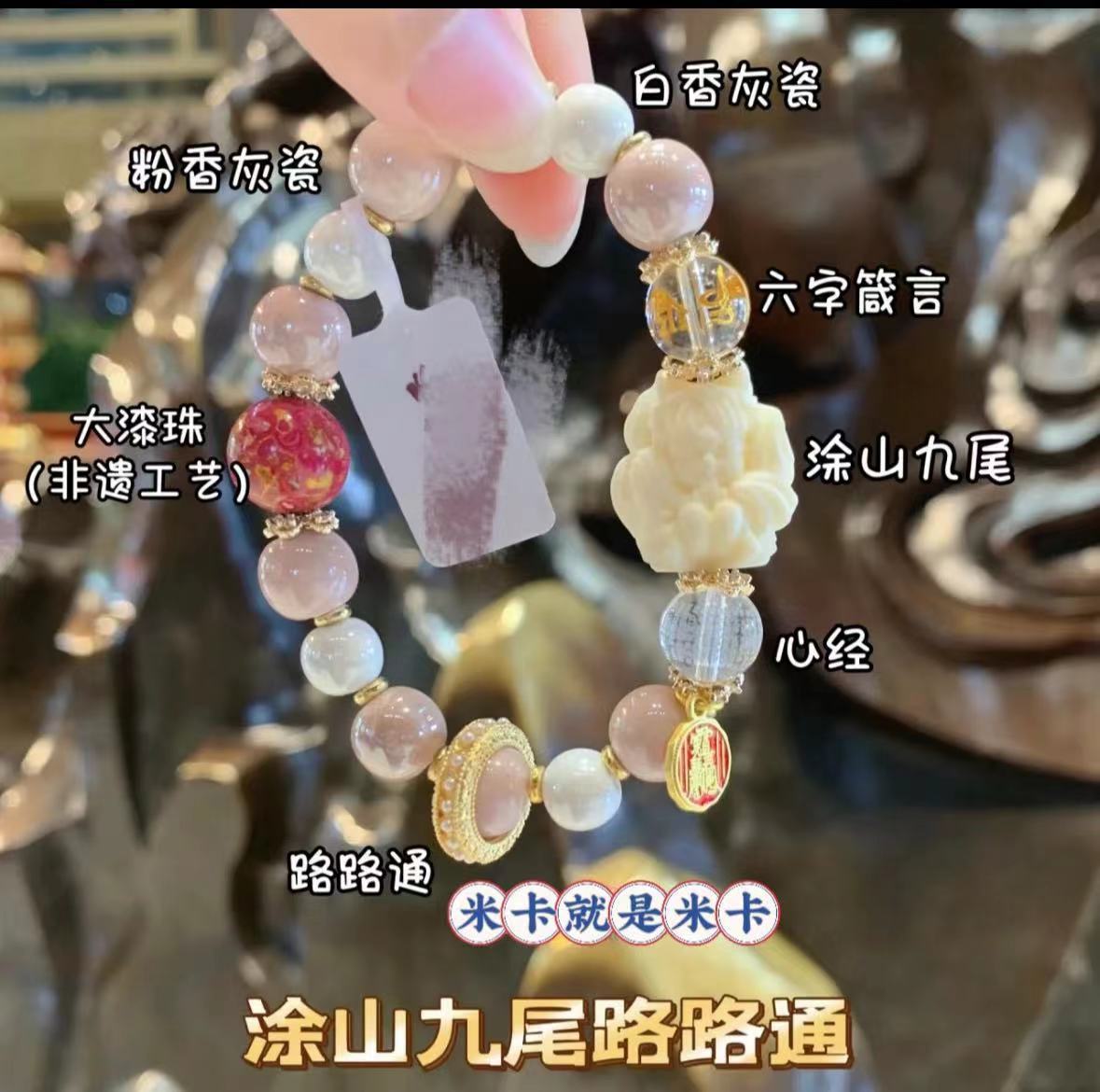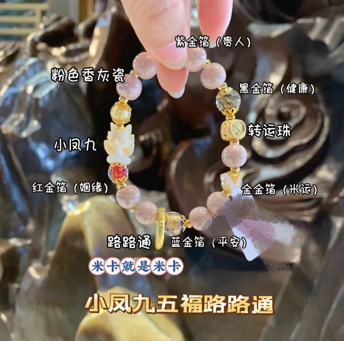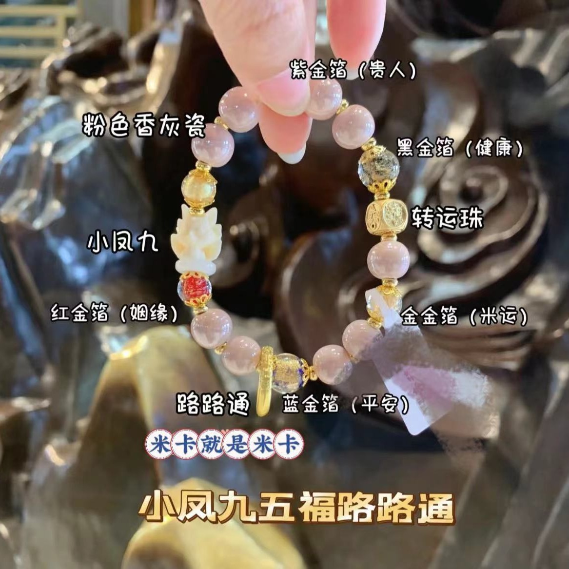 杭州代请流通处香灰瓷九尾狐手串粉瓷天然水晶小凤九恋爱闺蜜手链