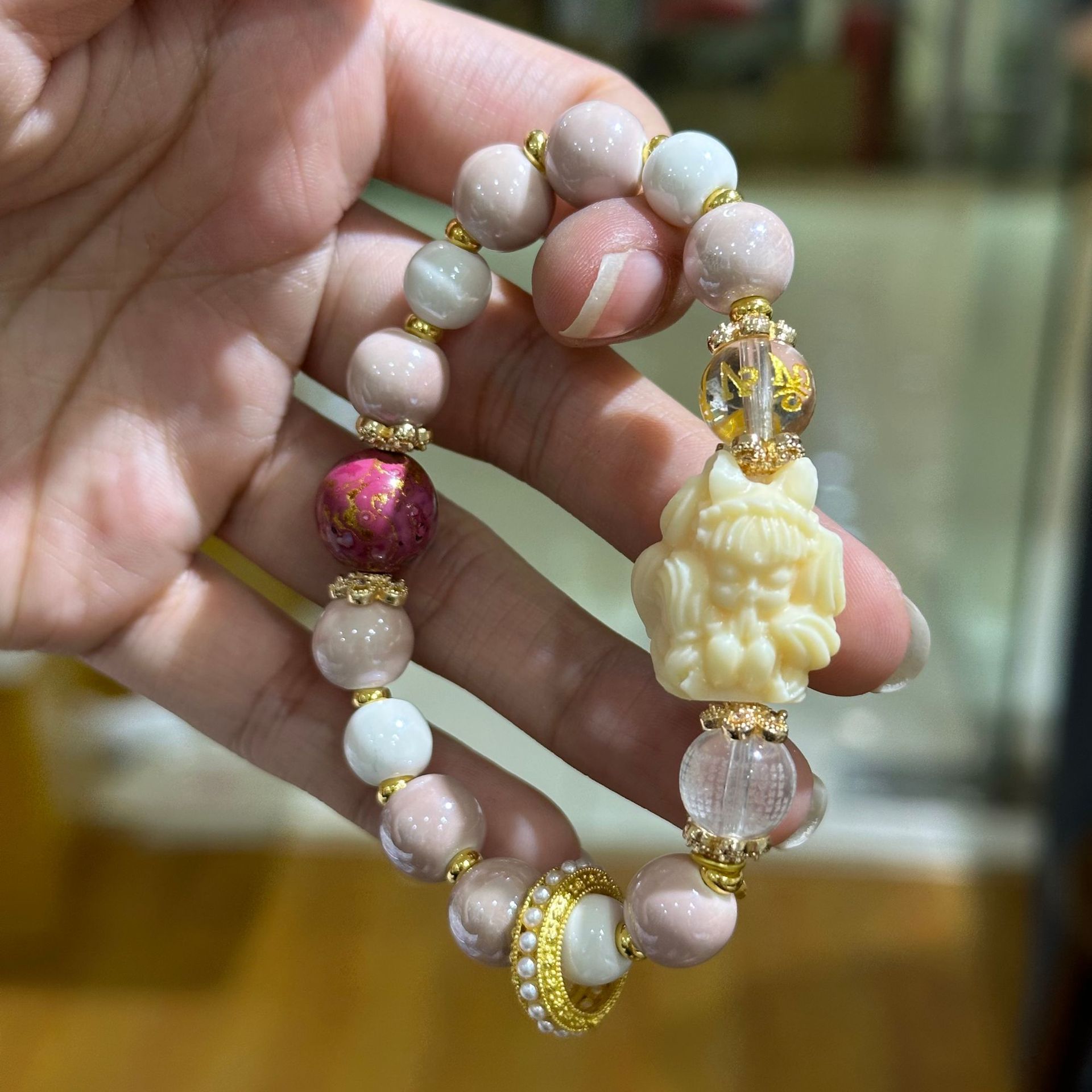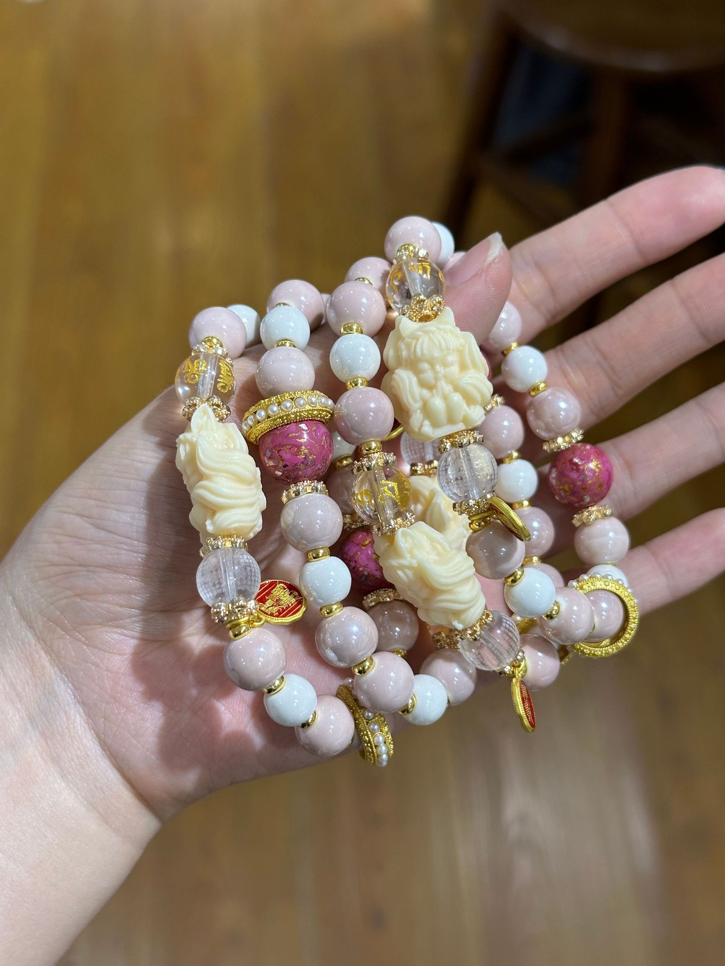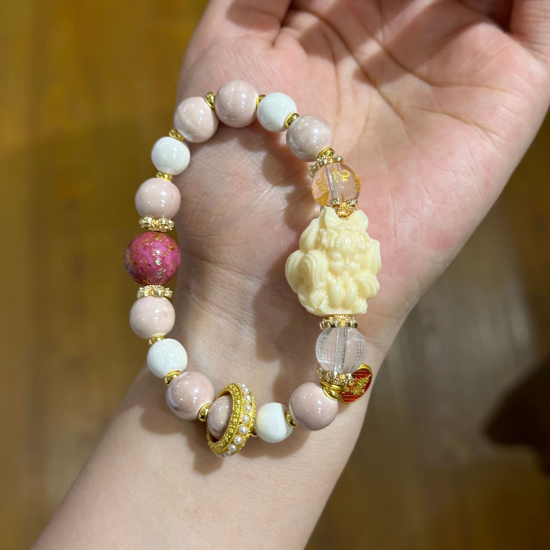 杭州代请流通处香灰瓷九尾狐手串粉瓷天然水晶小凤九恋爱闺蜜手链
