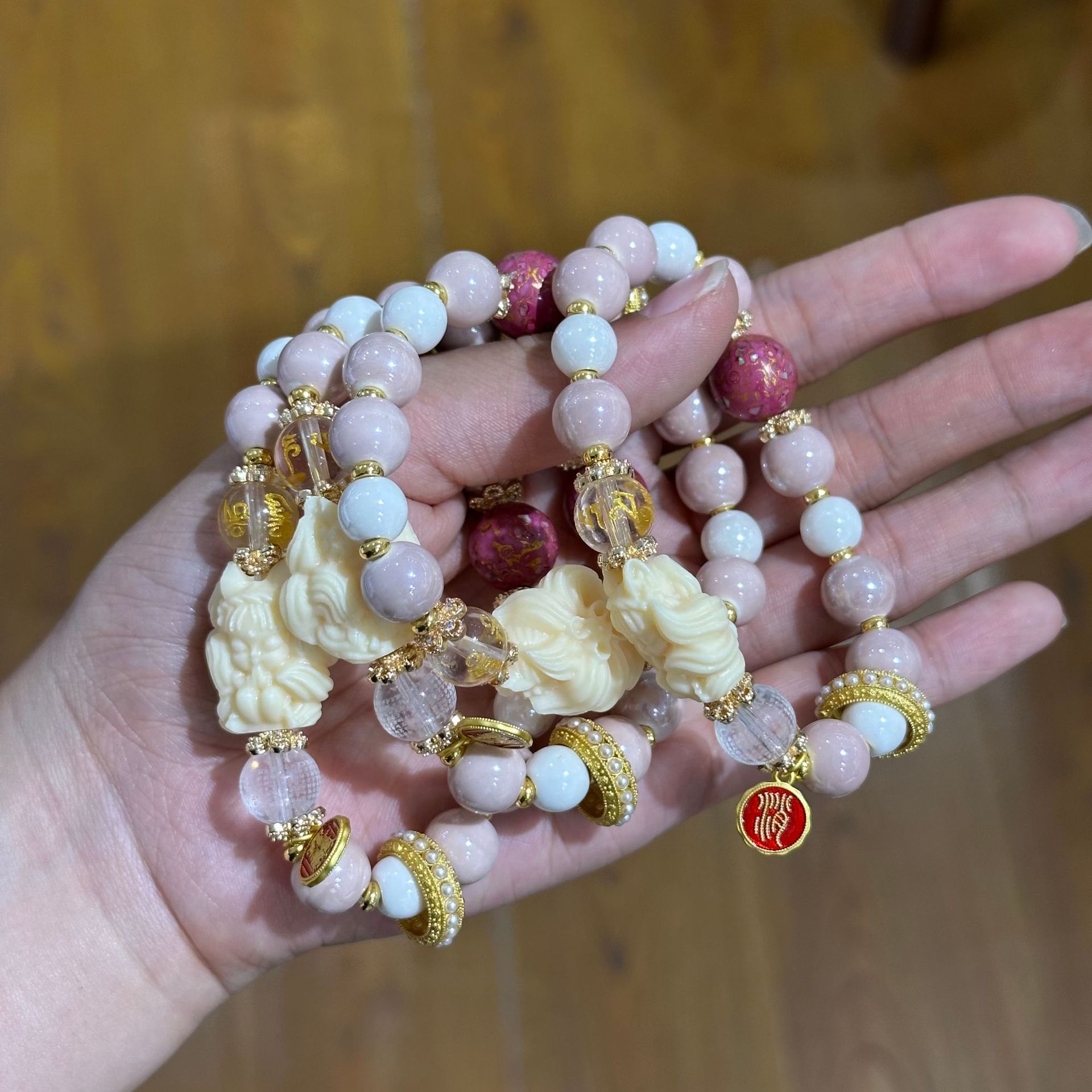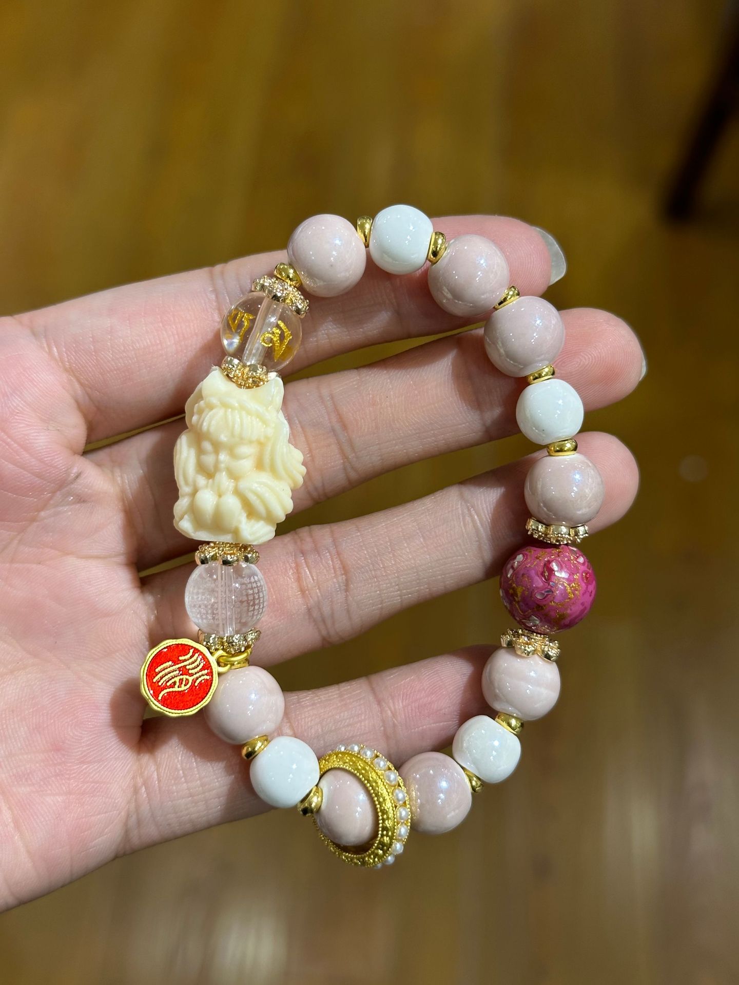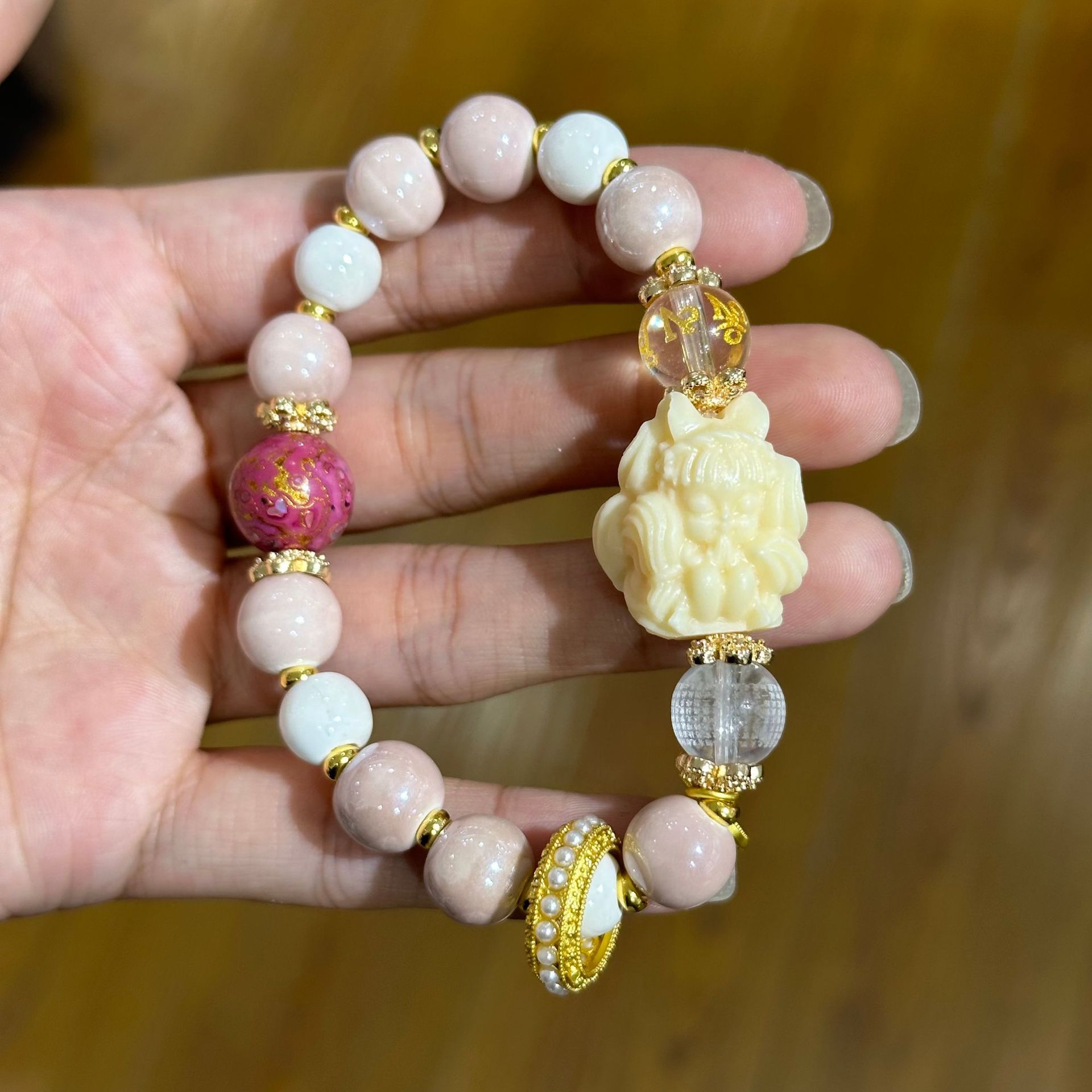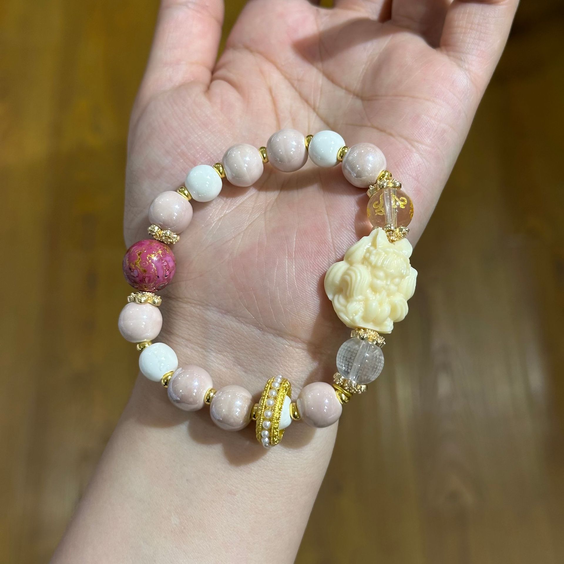 杭州代请流通处香灰瓷九尾狐手串粉瓷天然水晶小凤九恋爱闺蜜手链
