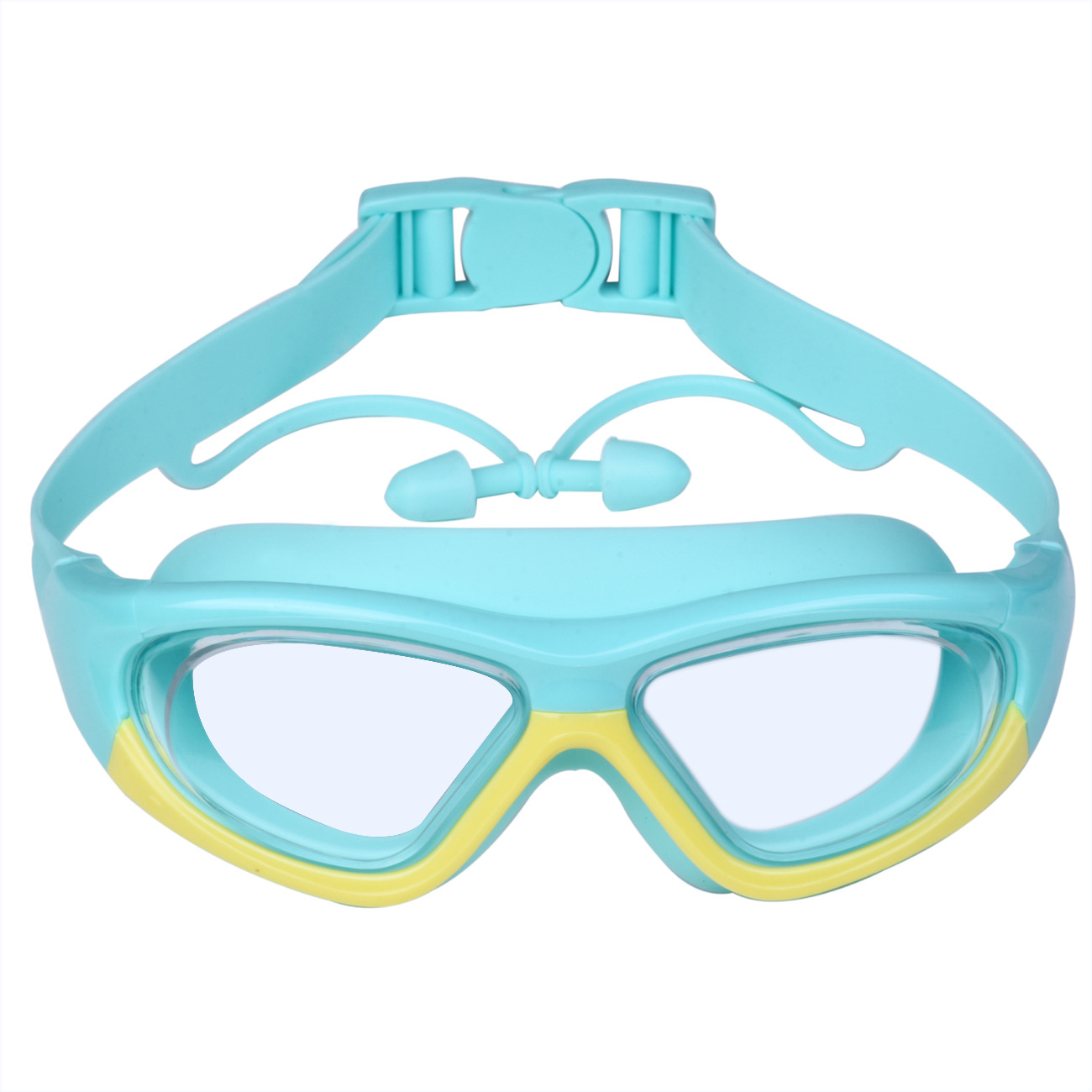 新款高清儿童泳镜男女童防雾游泳眼镜大框护目镜舒适硅胶连体耳塞