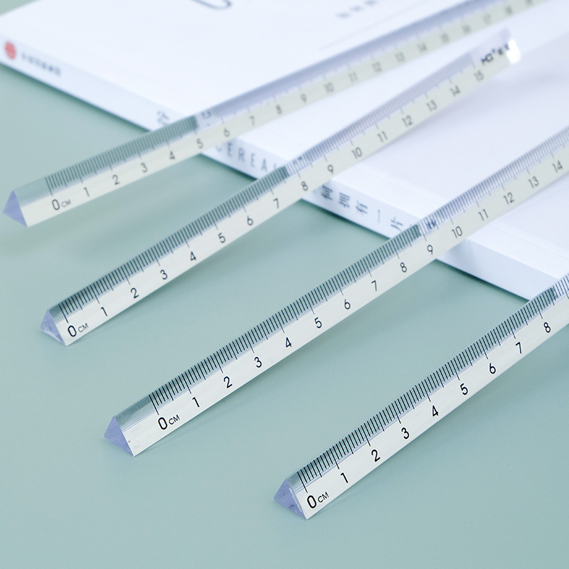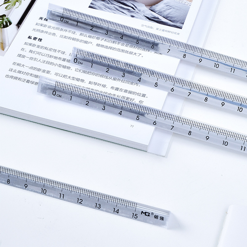 铭强透明塑料三角尺子15cm直尺小学生文具三棱立体三角尺刻度工具
