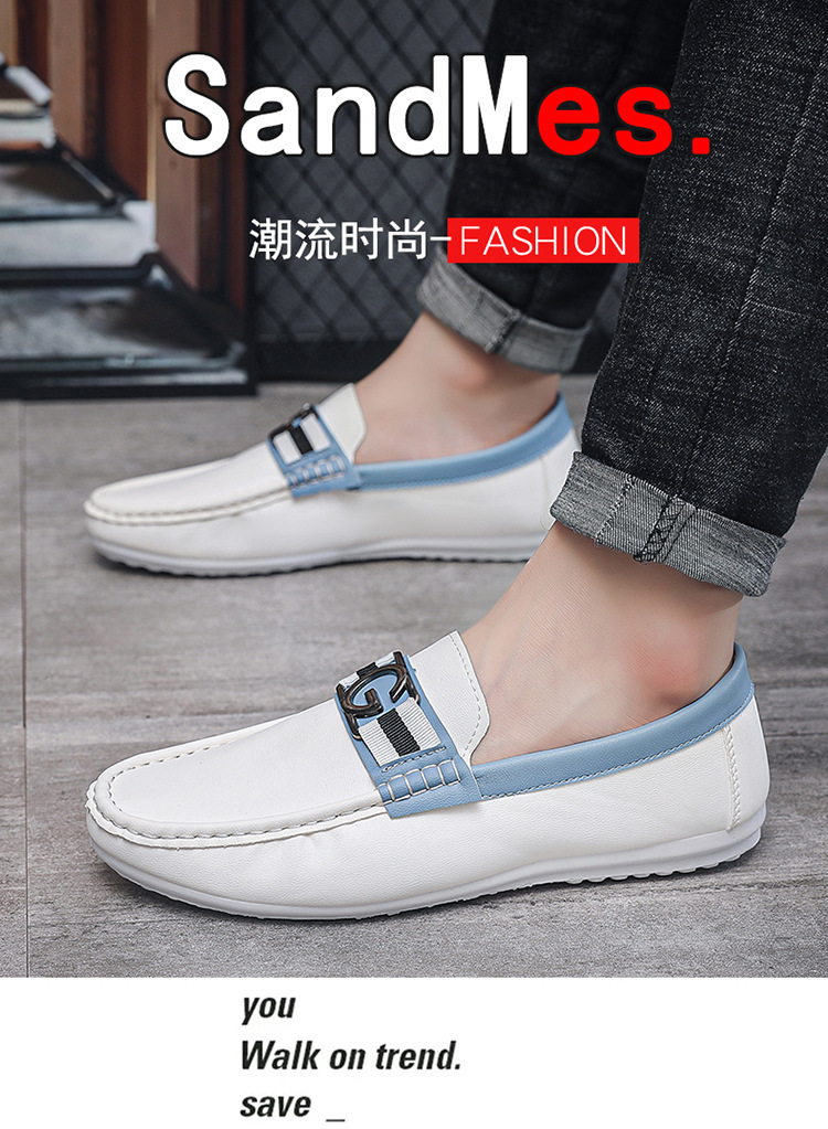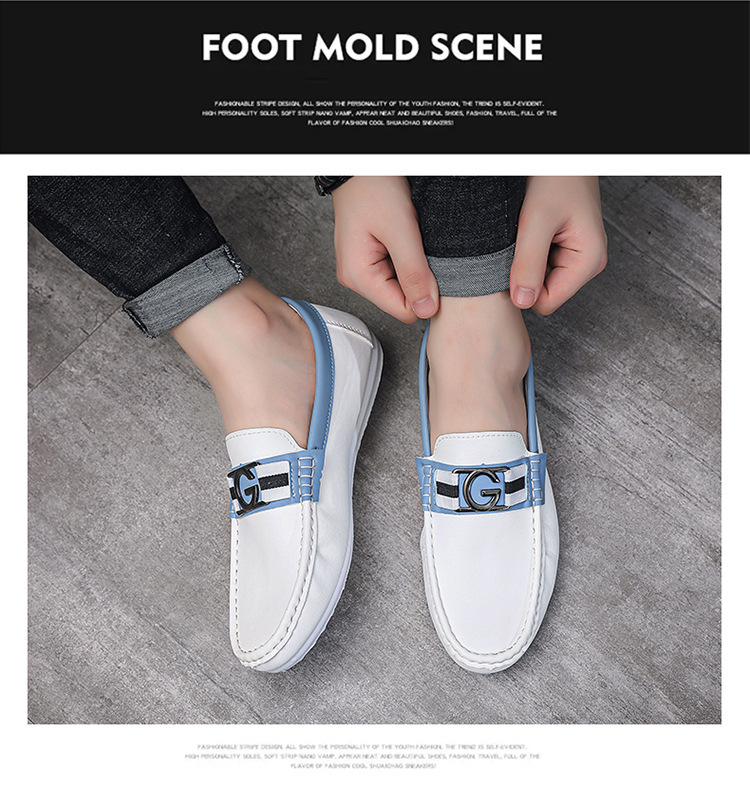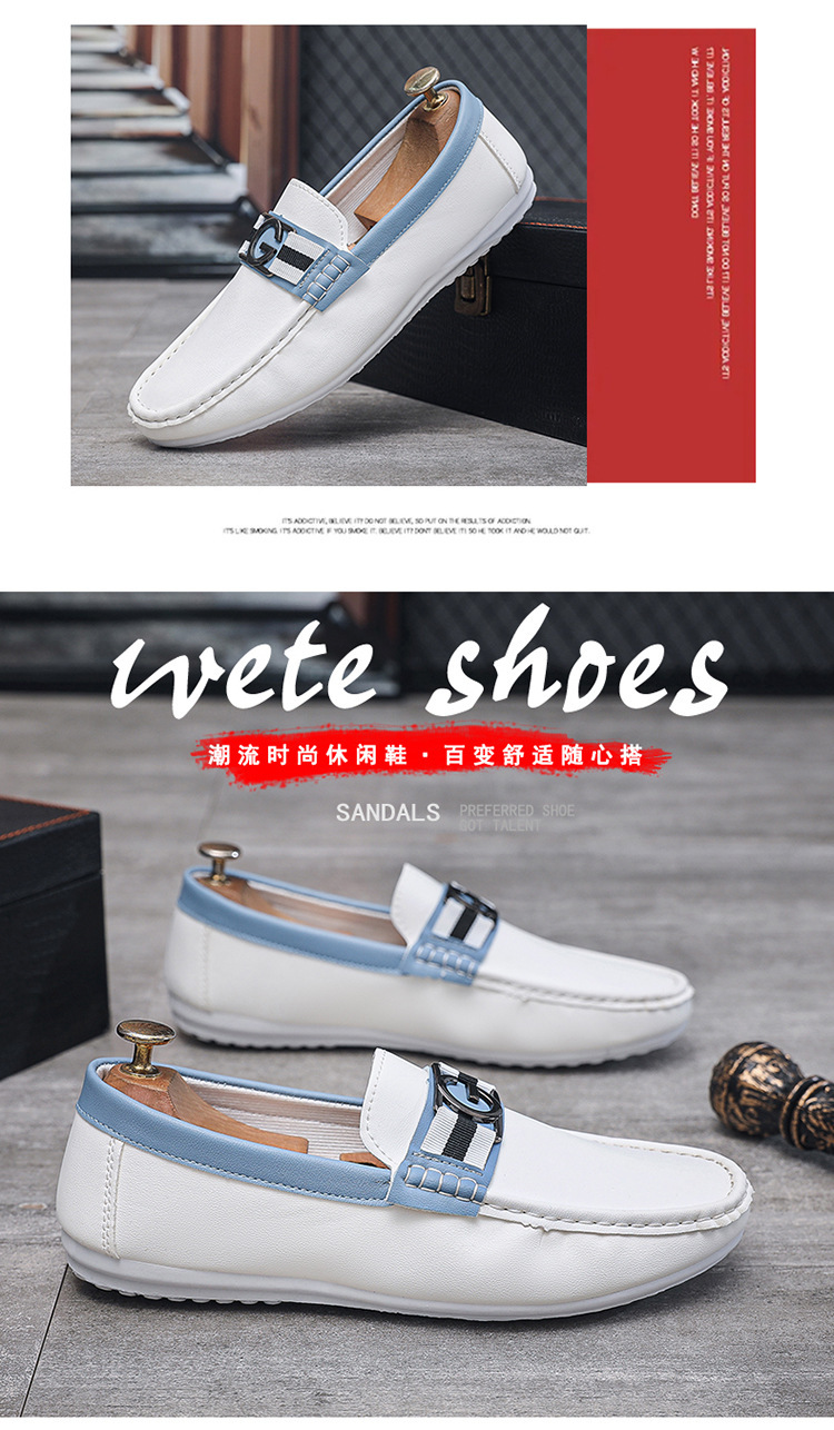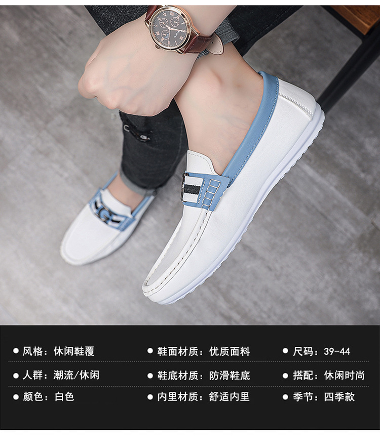 夏季男鞋潮流休闲豆豆鞋白色软皮软底舒适时尚百搭鞋子一脚蹬鞋子