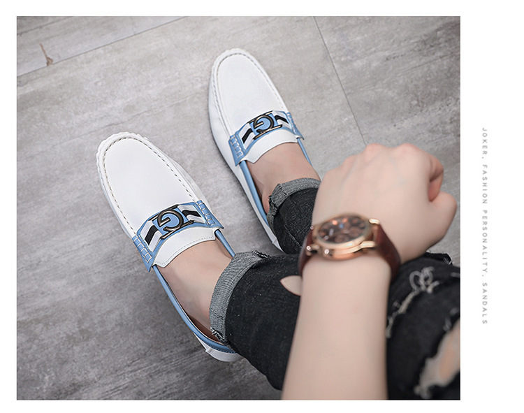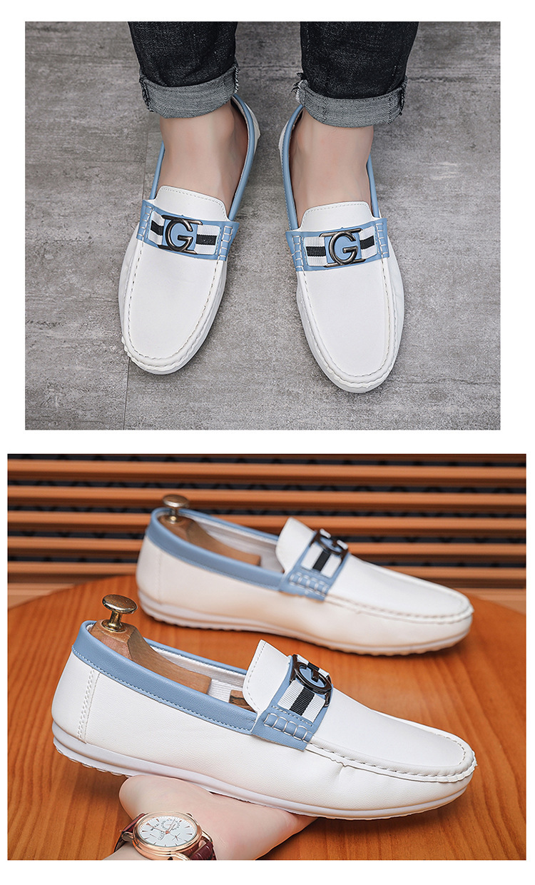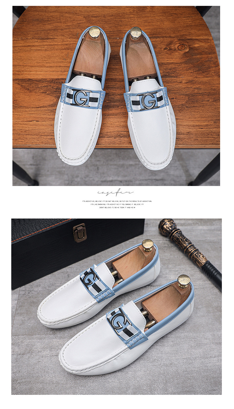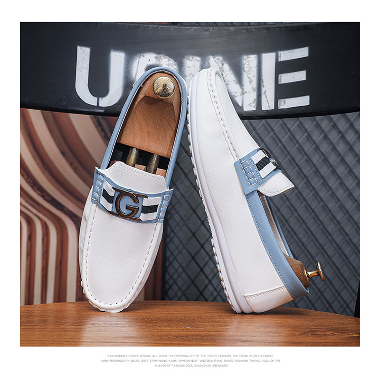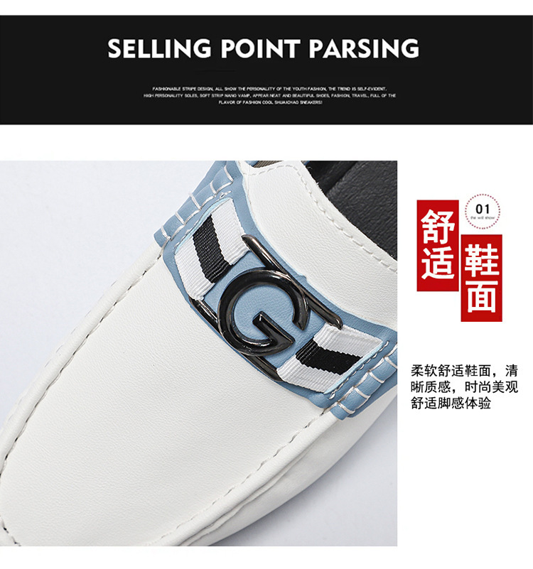 夏季男鞋潮流休闲豆豆鞋白色软皮软底舒适时尚百搭鞋子一脚蹬鞋子
