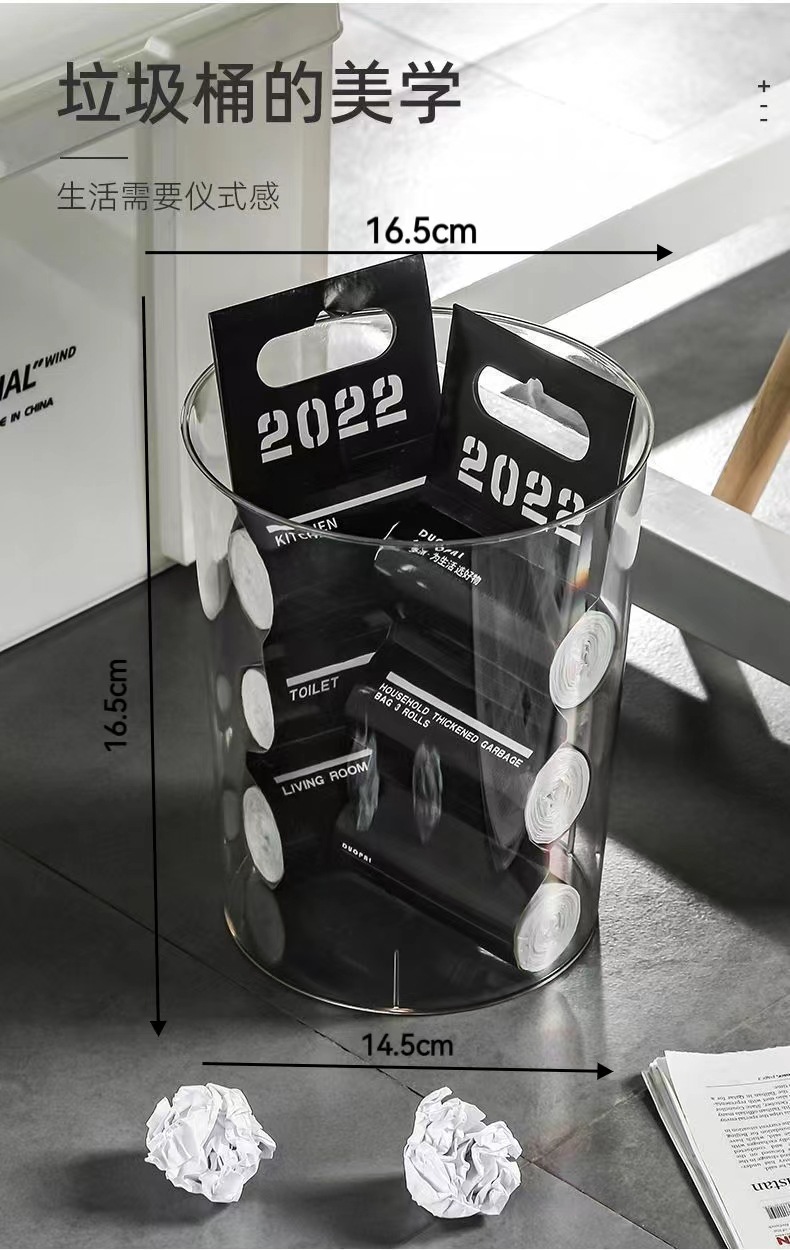 轻奢透明大号垃圾桶网红客厅家用卫生间厕所厨房桌面垃圾桶批发