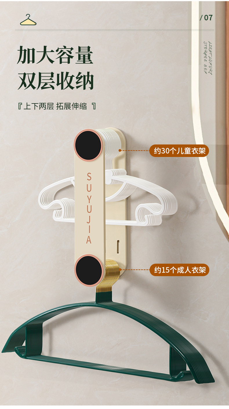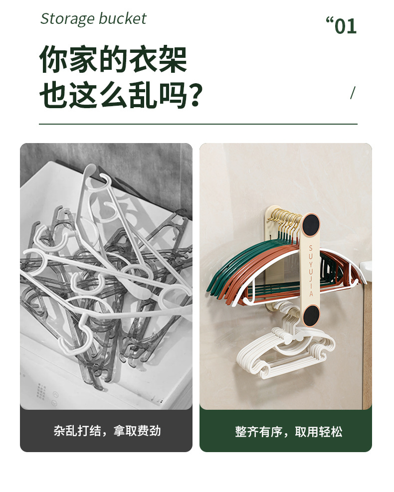 新款衣架收纳神器免打孔壁挂式衣架收纳架卫生间整理置物架