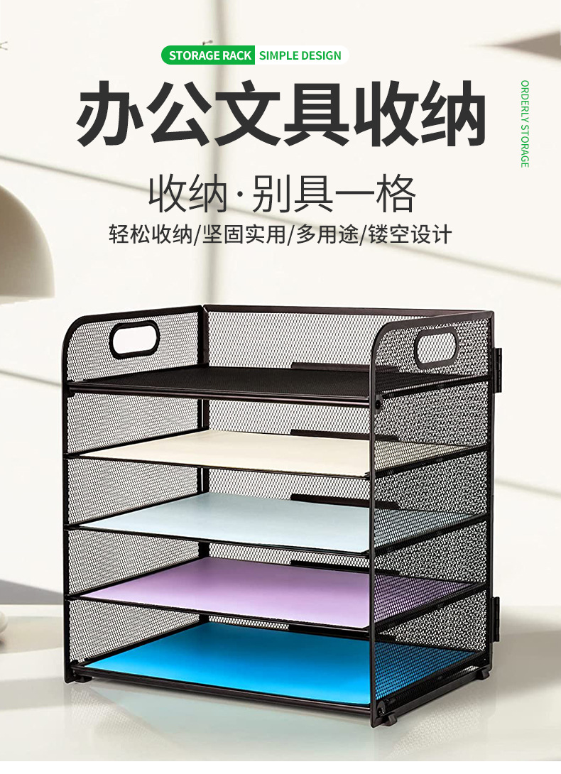 跨境办公室桌面置物架文件架客厅卧室收纳储物架铁艺文件收纳架
