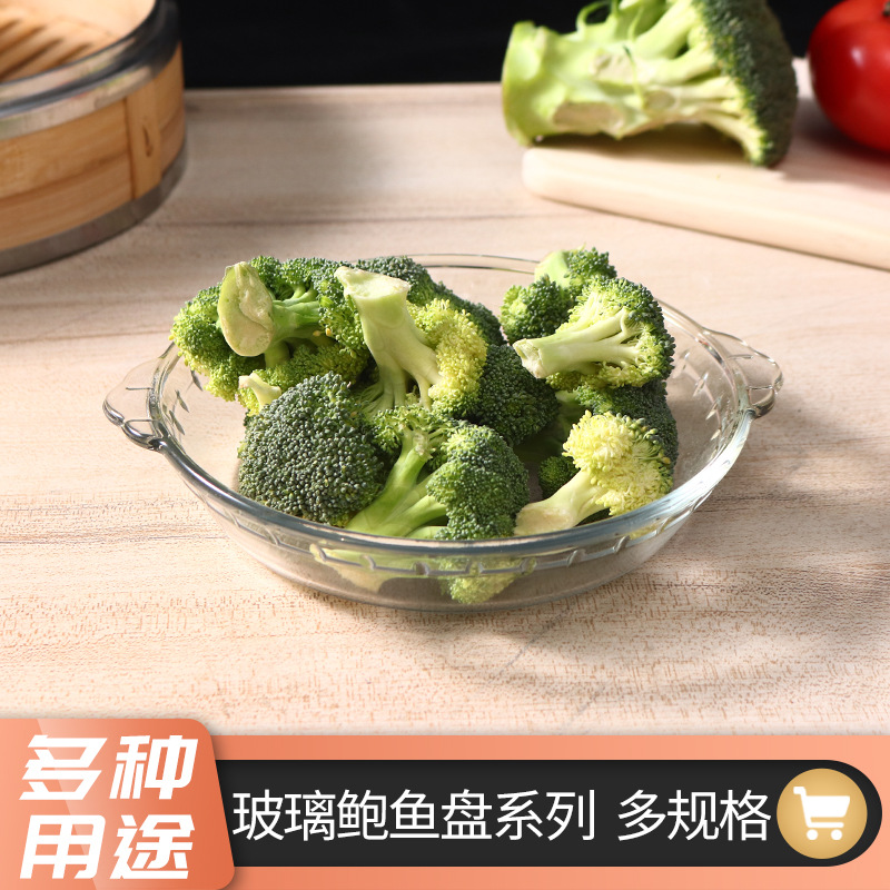 钢化玻璃鲍鱼盘 厂家批发菲内克斯可微波烤箱水果玻璃盘 水果盘