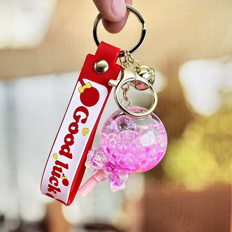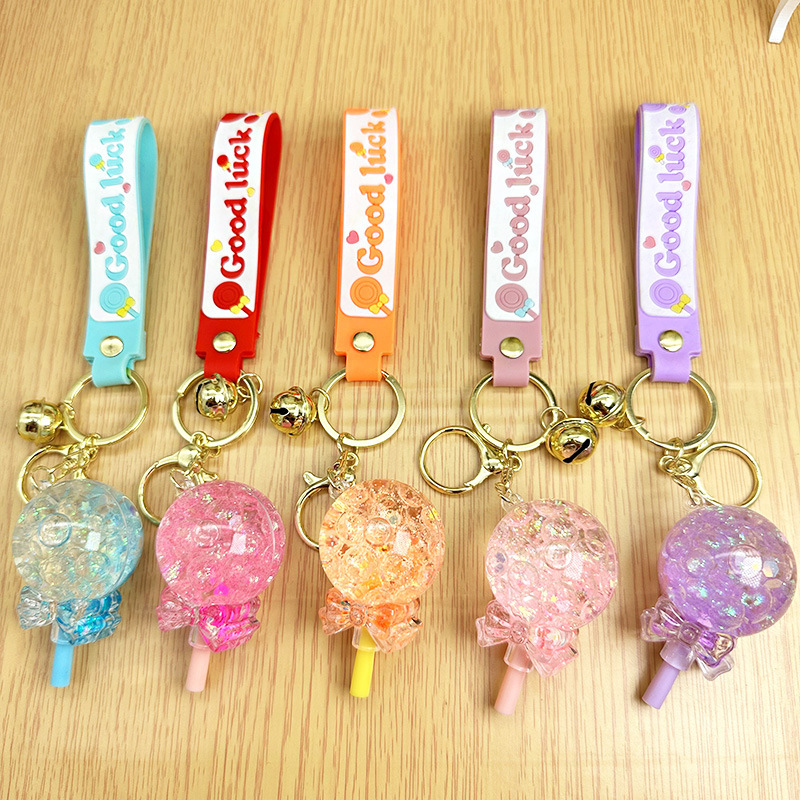 入油流沙棒棒糖钥匙扣挂件女可爱精致书包挂件汽车钥匙链儿童礼物