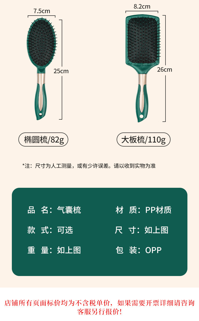 美发梳气垫理发店顺发男士气囊油头排骨梳头皮按摩梳卷发女梳子