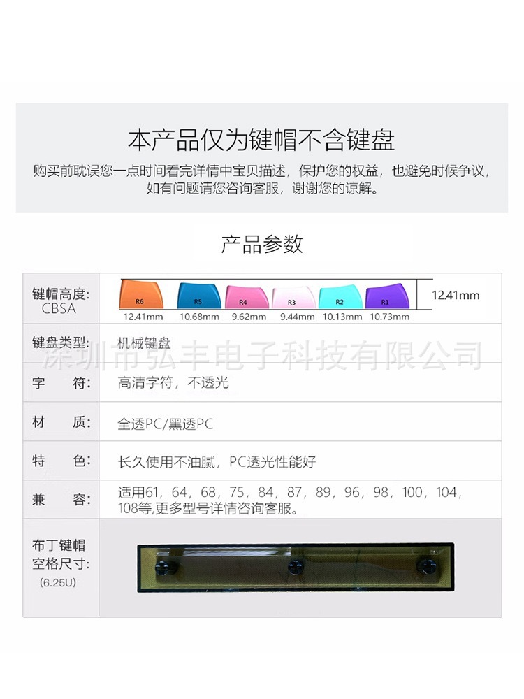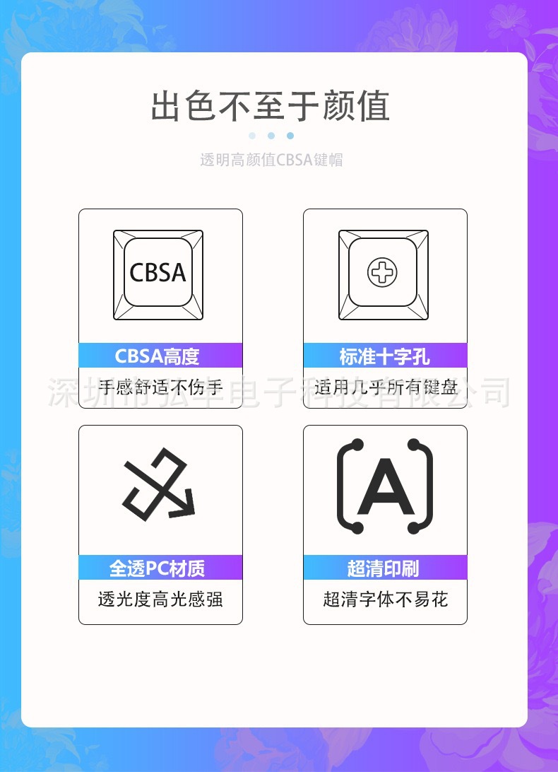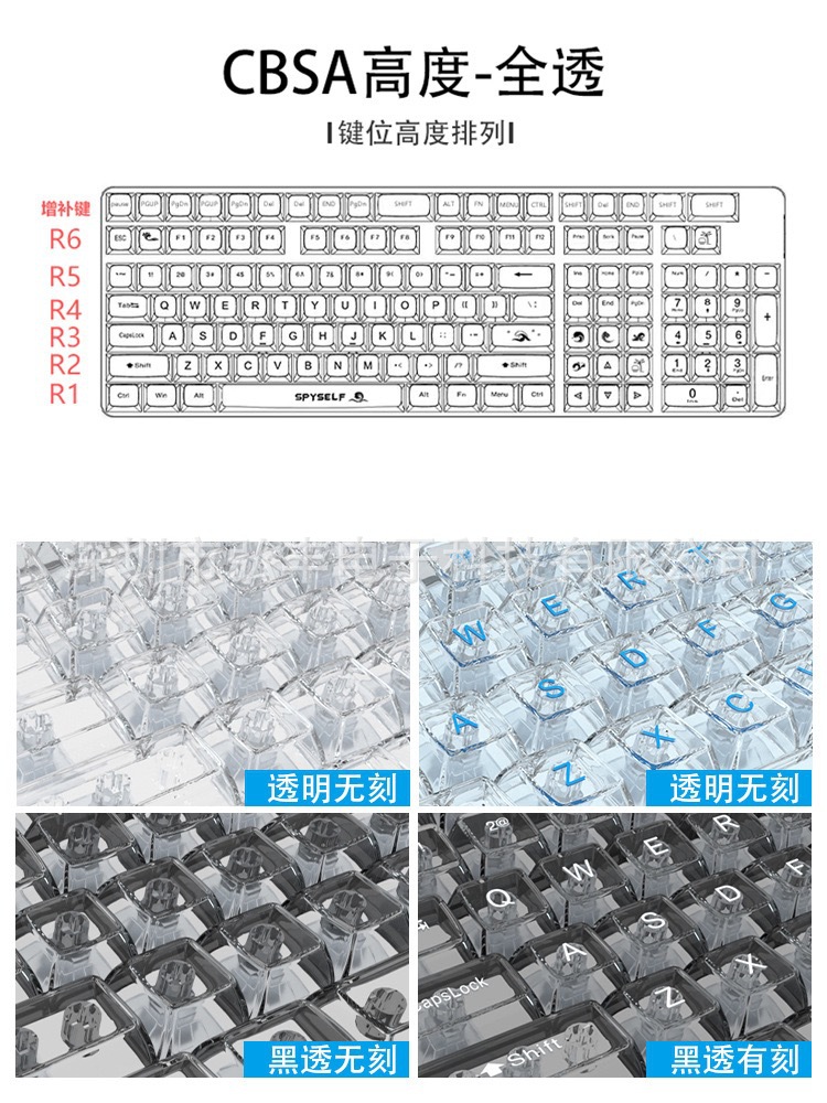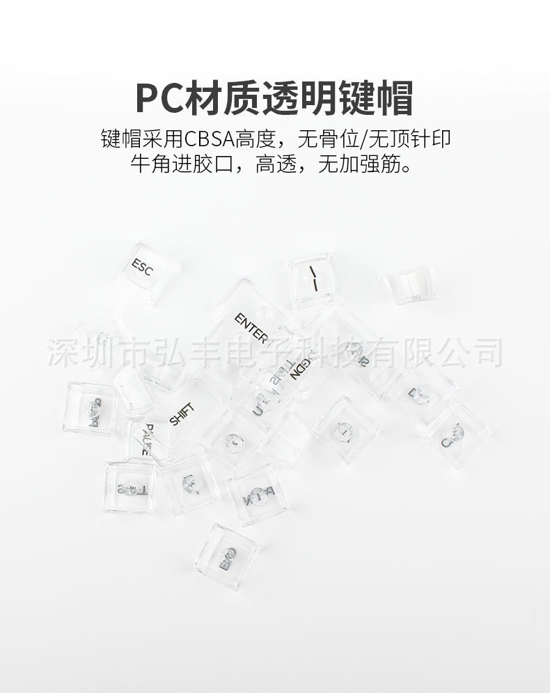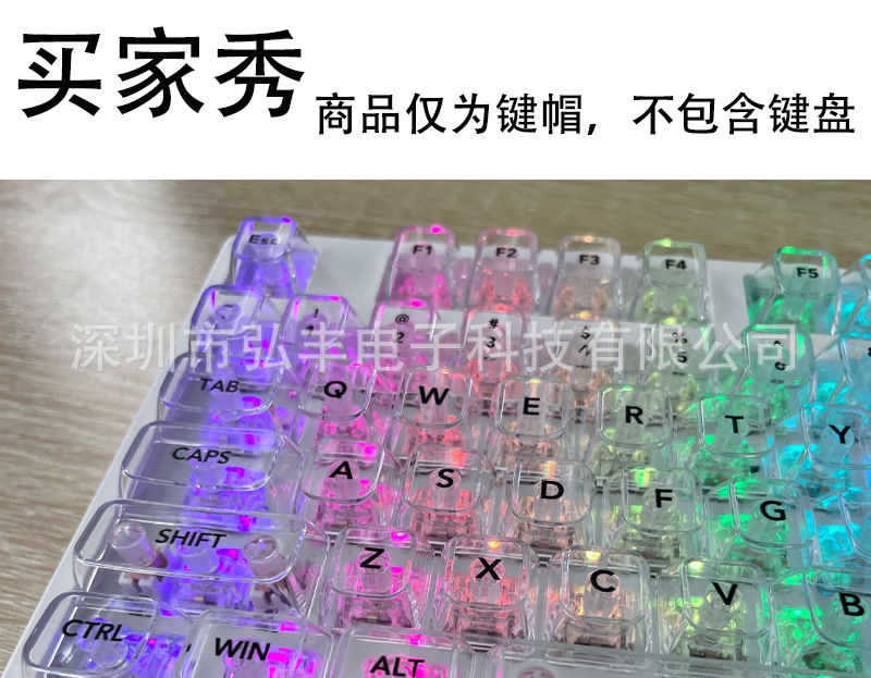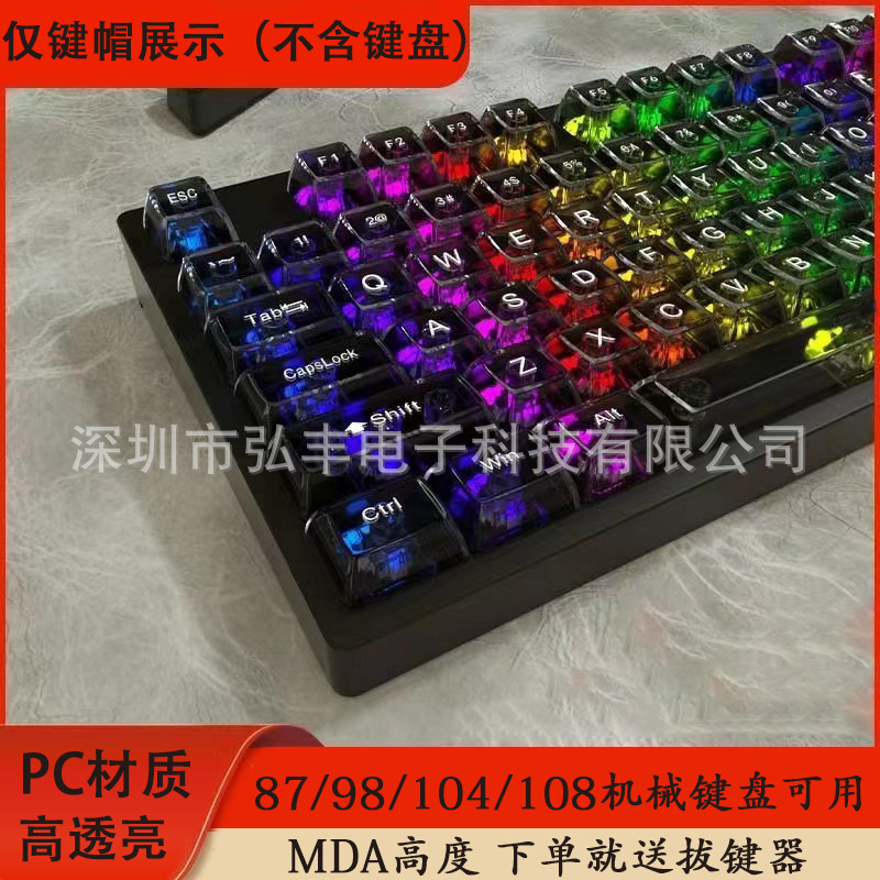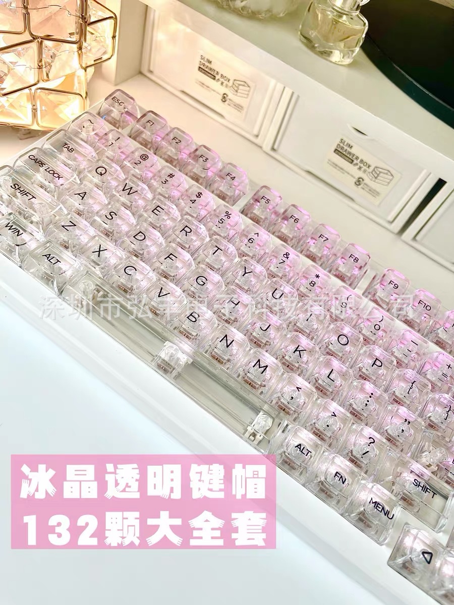 透明键帽透光冰晶大全套机械键盘通用61键87键98键104键水晶键帽