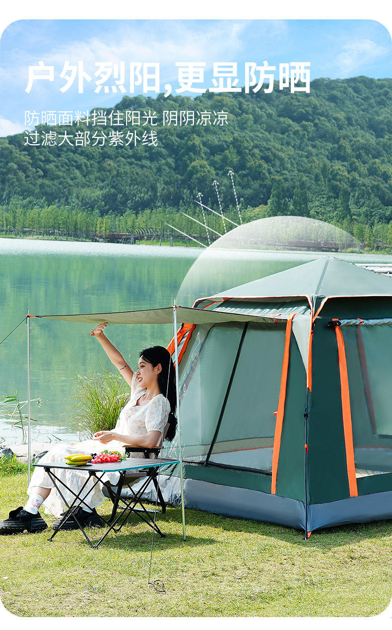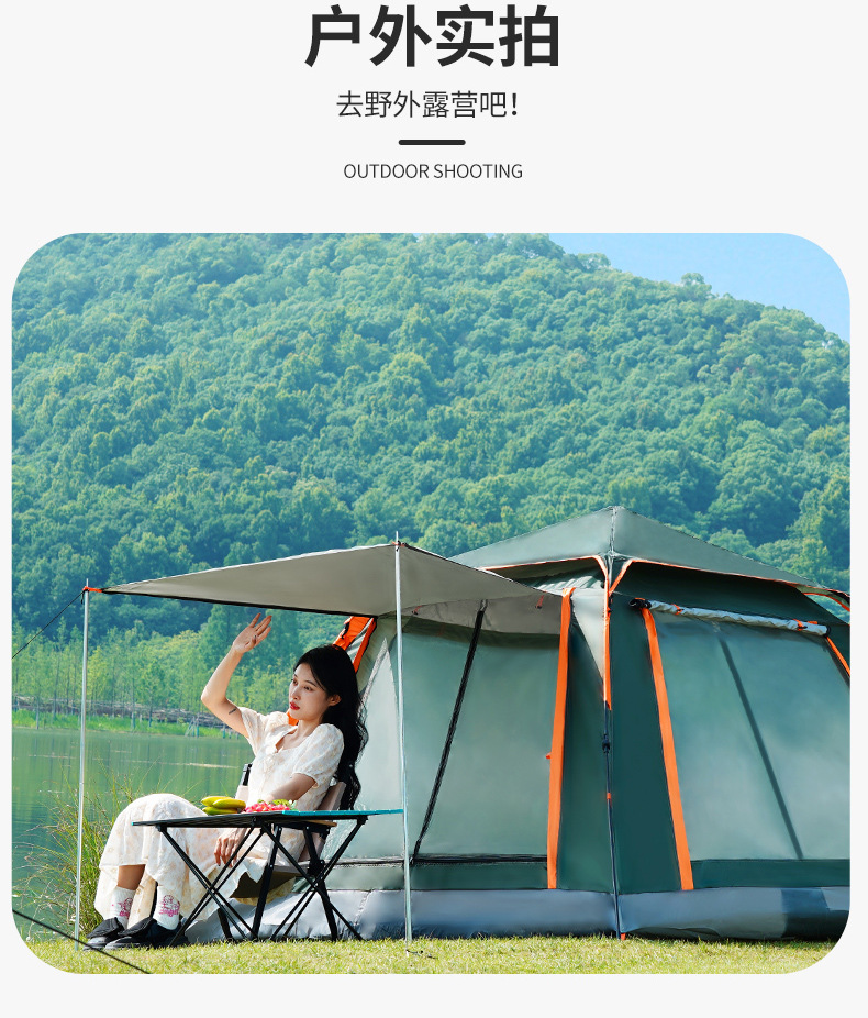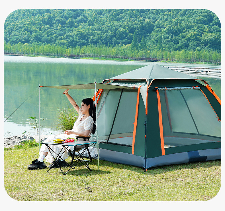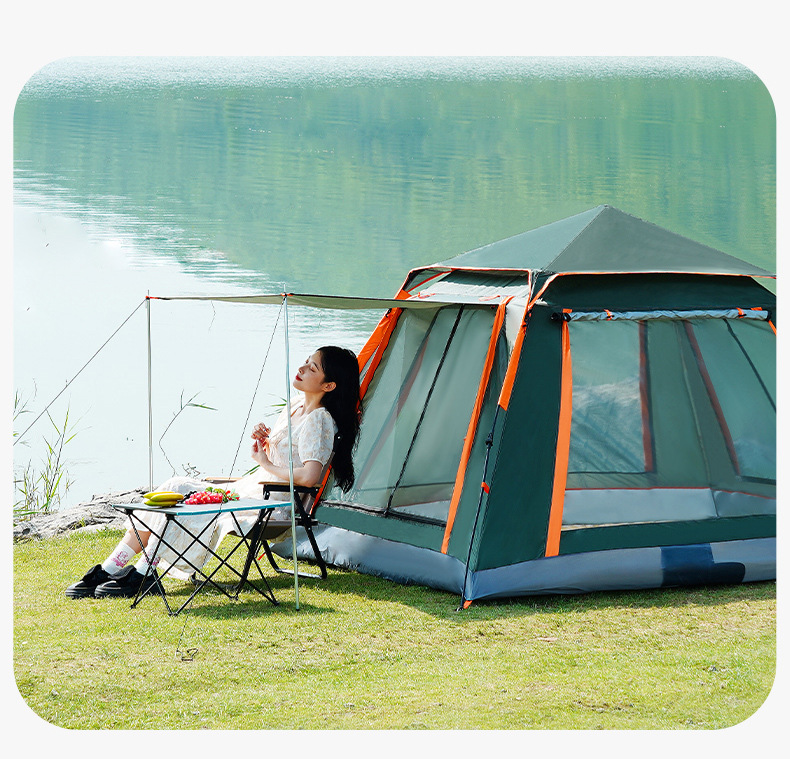 户外便携式可折叠全自动野餐野炊公园野外防暴雨防晒六角帐篷露营