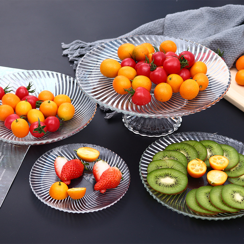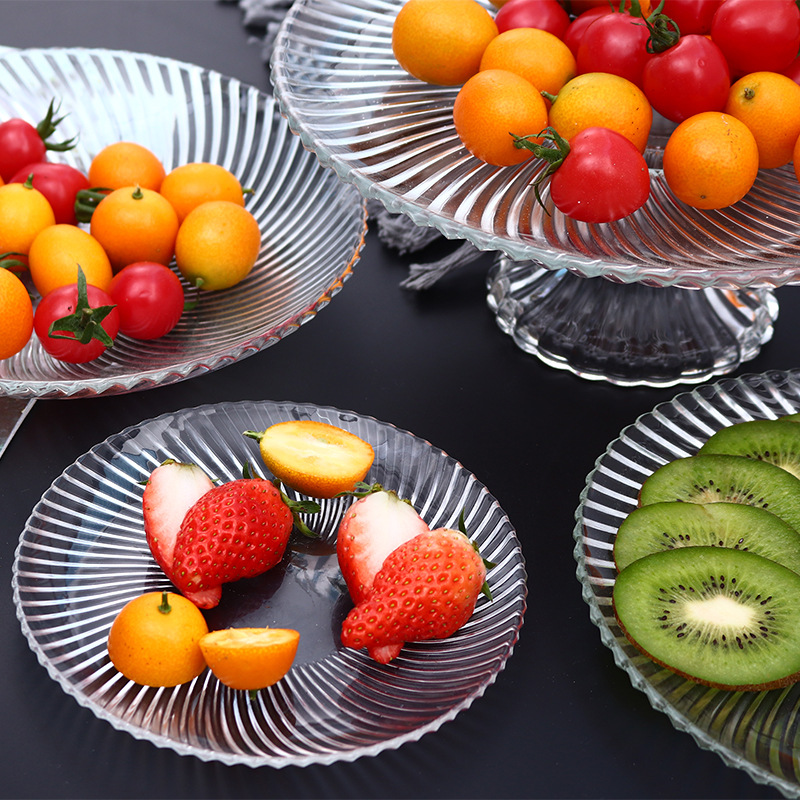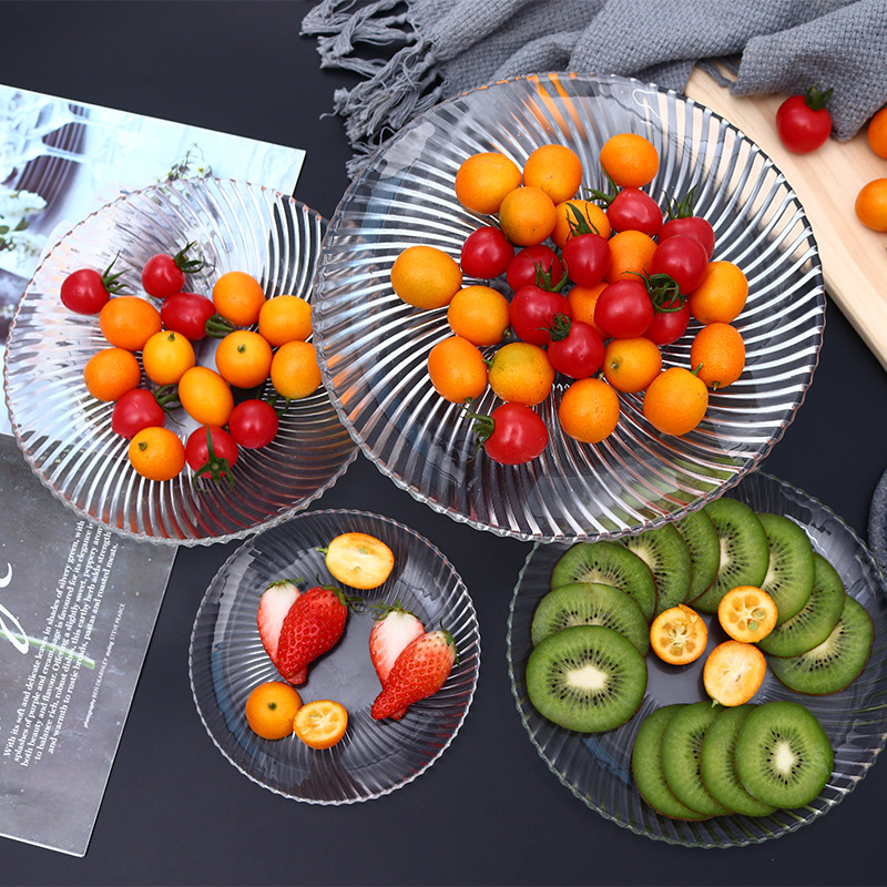 厂家供应斜纹盘系列果盘 玻璃水果盘 透明玻璃果盘玻璃盘