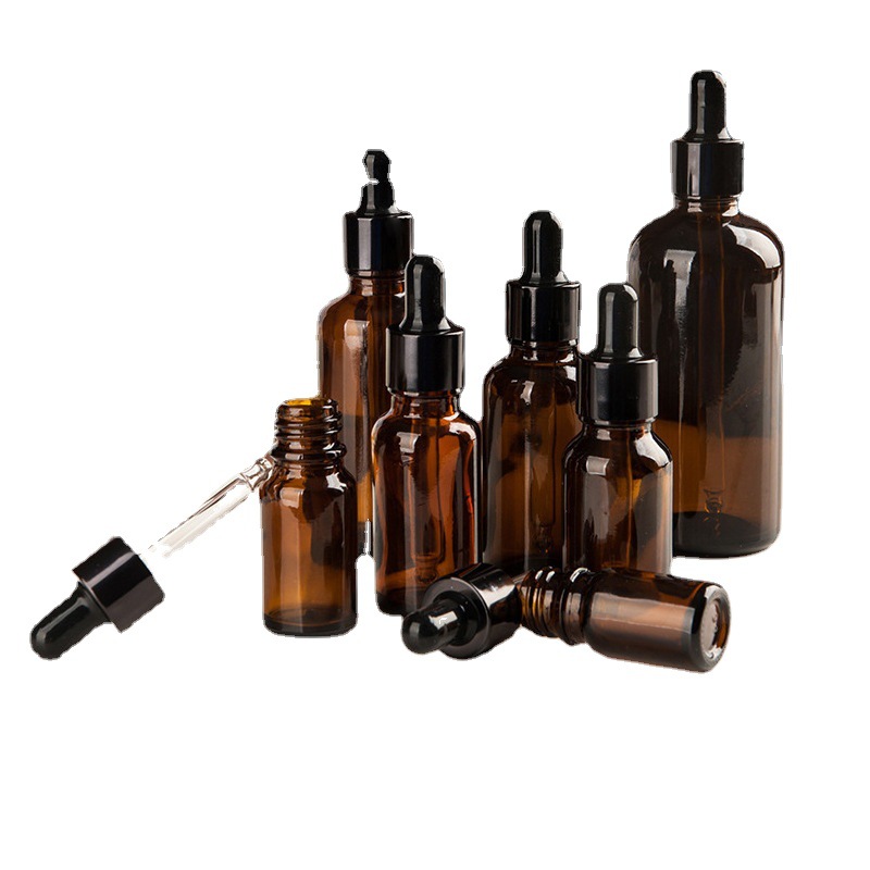 棕茶色精油瓶空瓶5-100ml黑色胶头滴管化妆品精油玻璃分装包装瓶