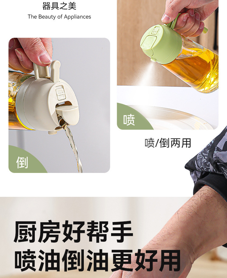 新款厨房喷油壶 家用喷倒两用油壶 耐热高硼硅玻璃食用油喷雾油壶
