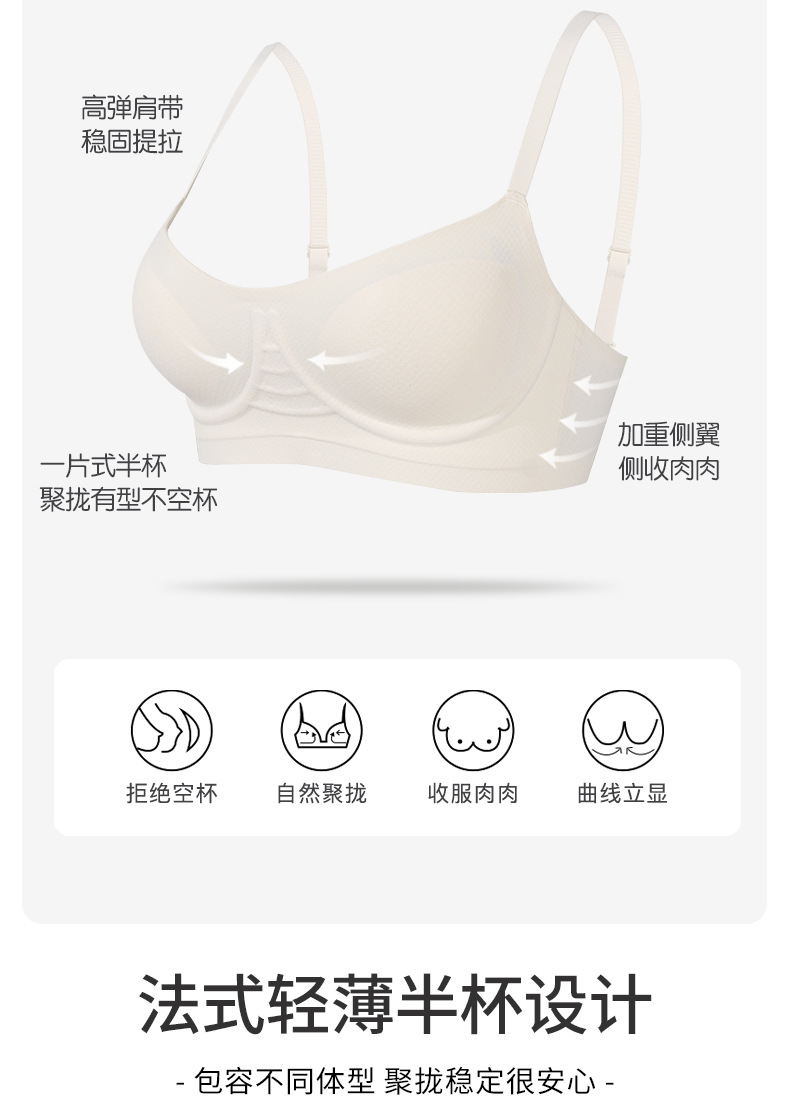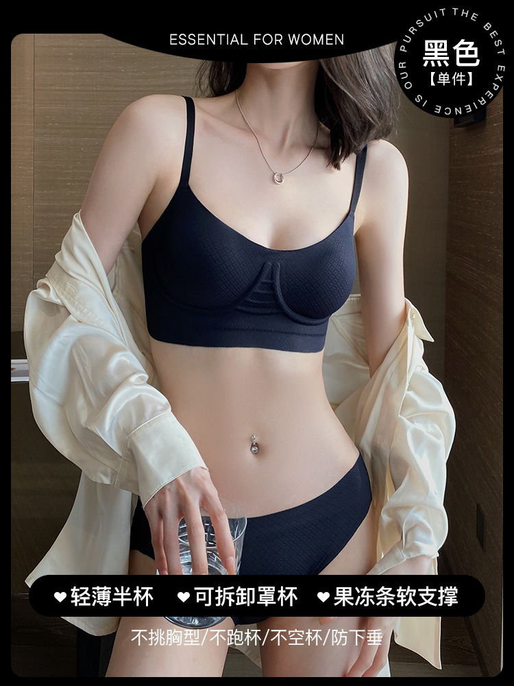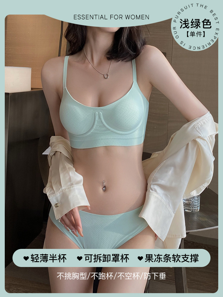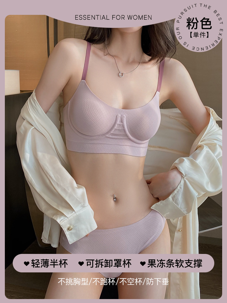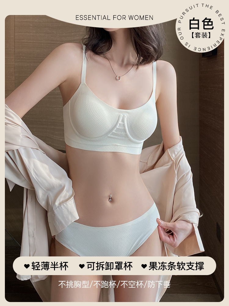 软支撑无痕内衣夏季女薄款舒适无钢圈收副乳防下垂果冻条文胸套装