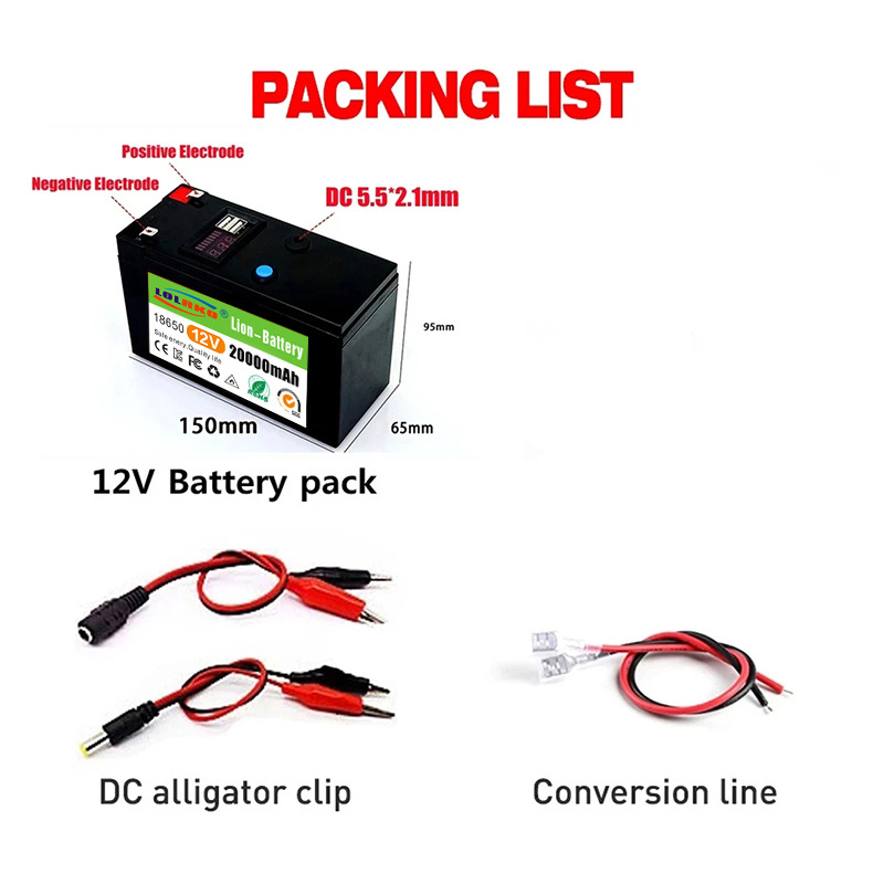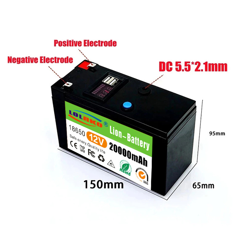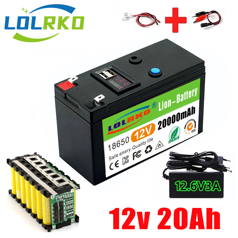 12V 20Ah 18650锂电池组适用于12.6V 3A充电的太阳能电动汽车电池
