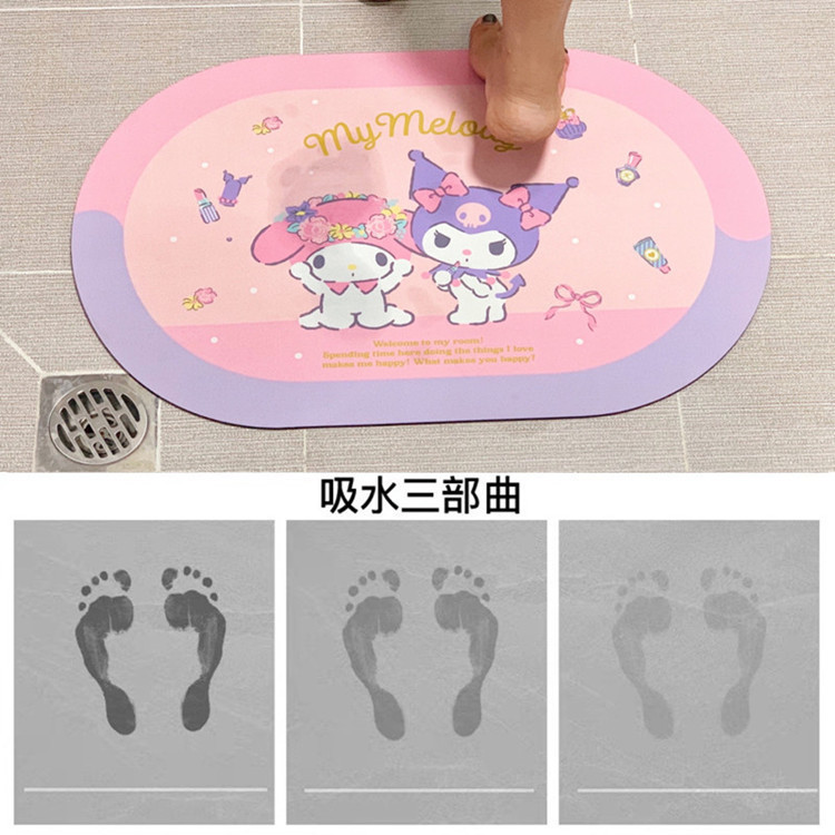 可爱卡通三丽鸥硅藻泥软地垫家用卫浴脚垫厕所防滑吸水速干地垫子