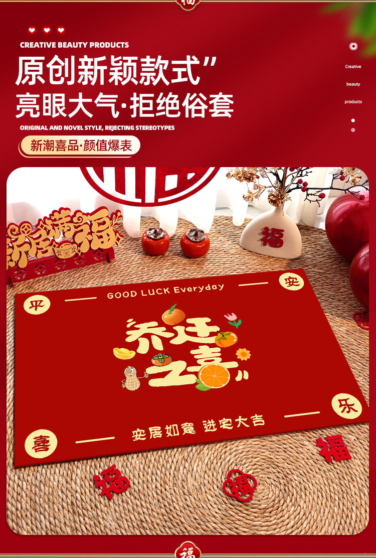 新中式乔迁之喜地垫新居仪式入宅门口脚垫进宅大吉红色门垫现货