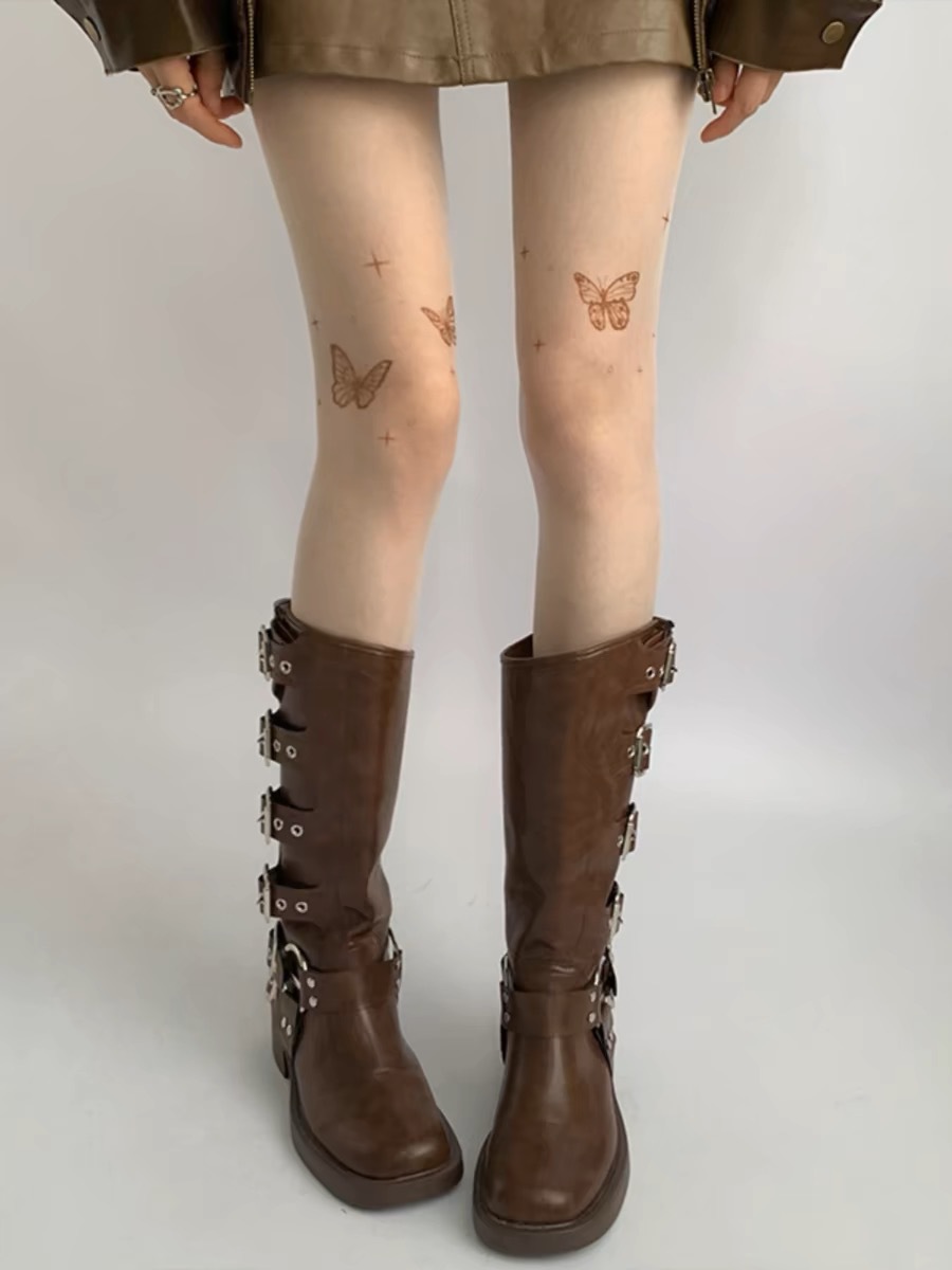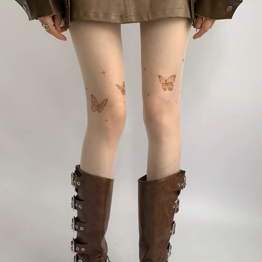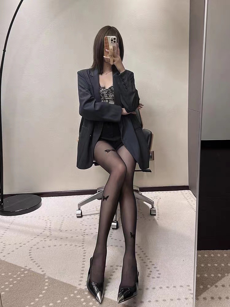 春夏季女薄款美拉德色系酒红蝴蝶辣妹性感纯欲防勾丝日系超薄高透