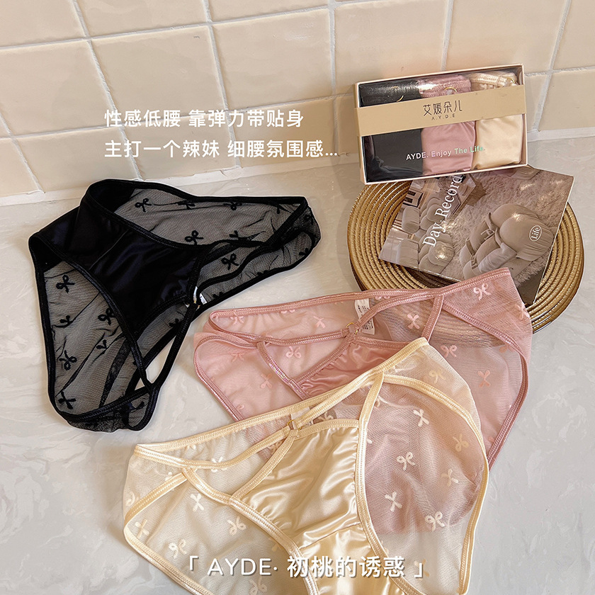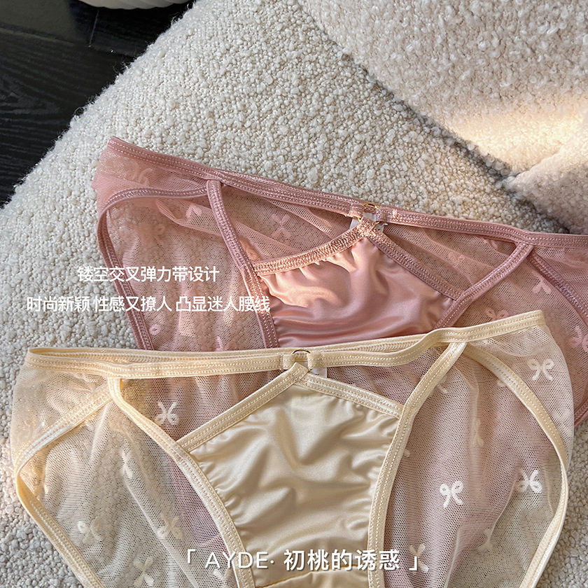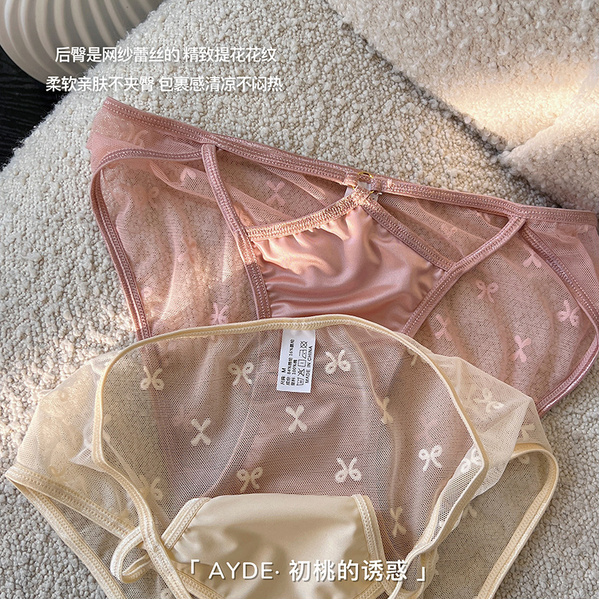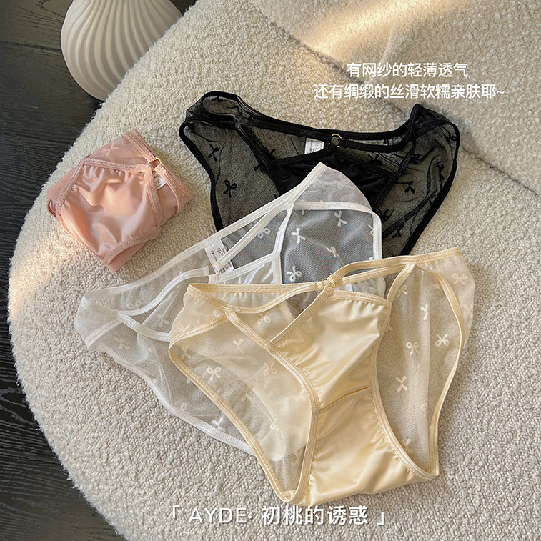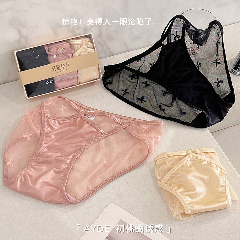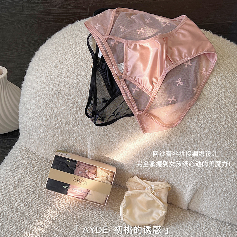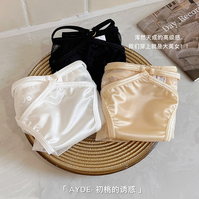 初桃的诱惑~日系性感缎面内裤女士低腰纯欲透气纯棉档三角裤女生