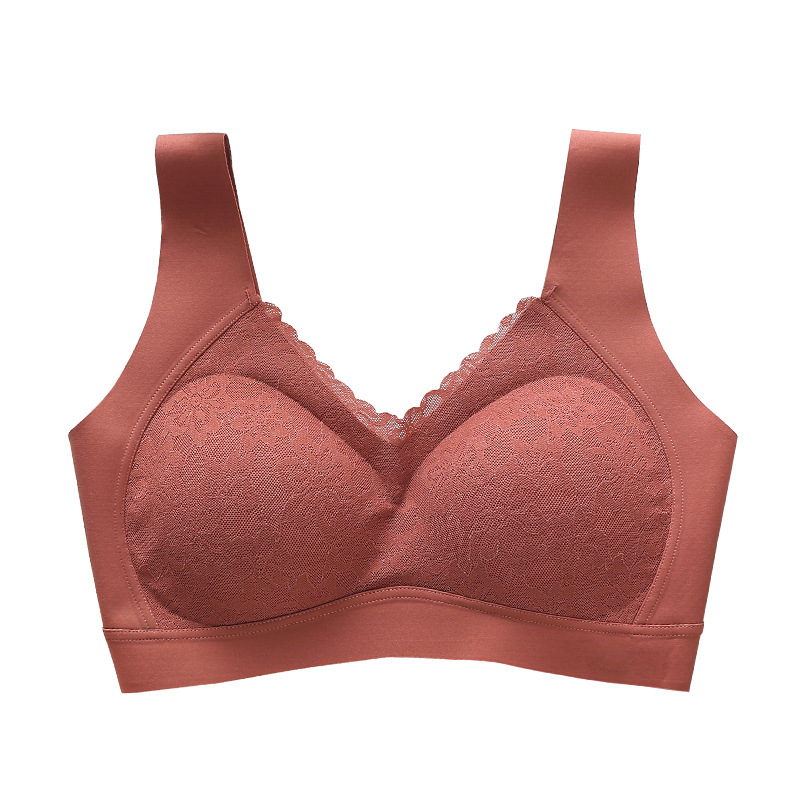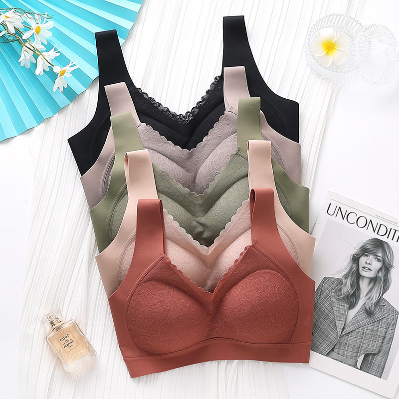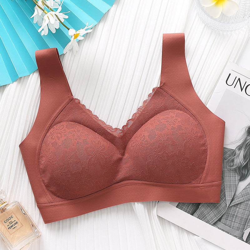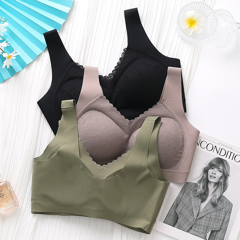 无痕内衣女臻享蕾丝无钢圈背心式胸罩聚拢收副乳上托薄款运动文胸