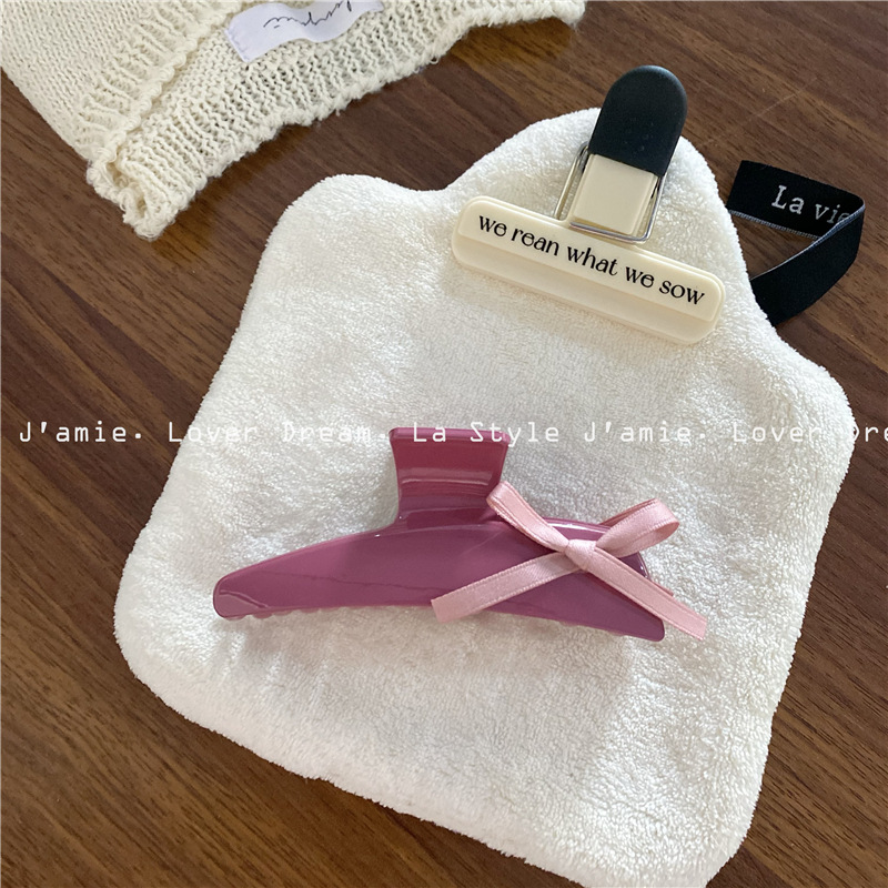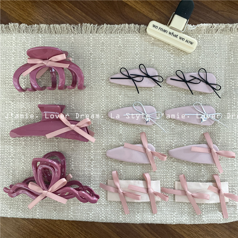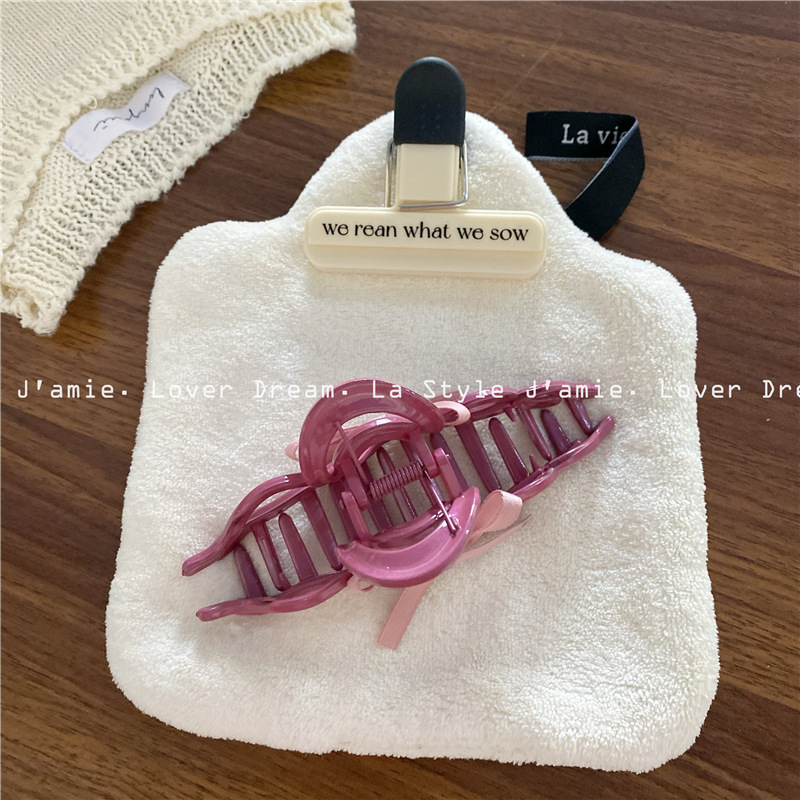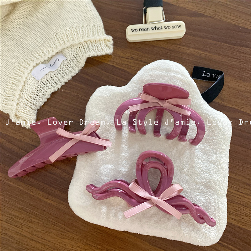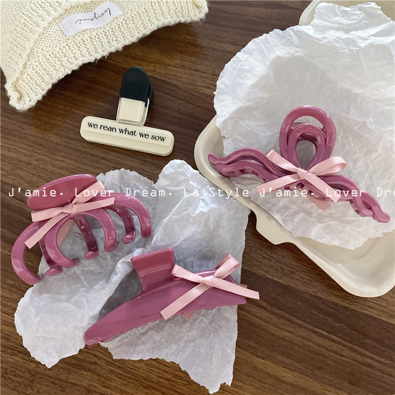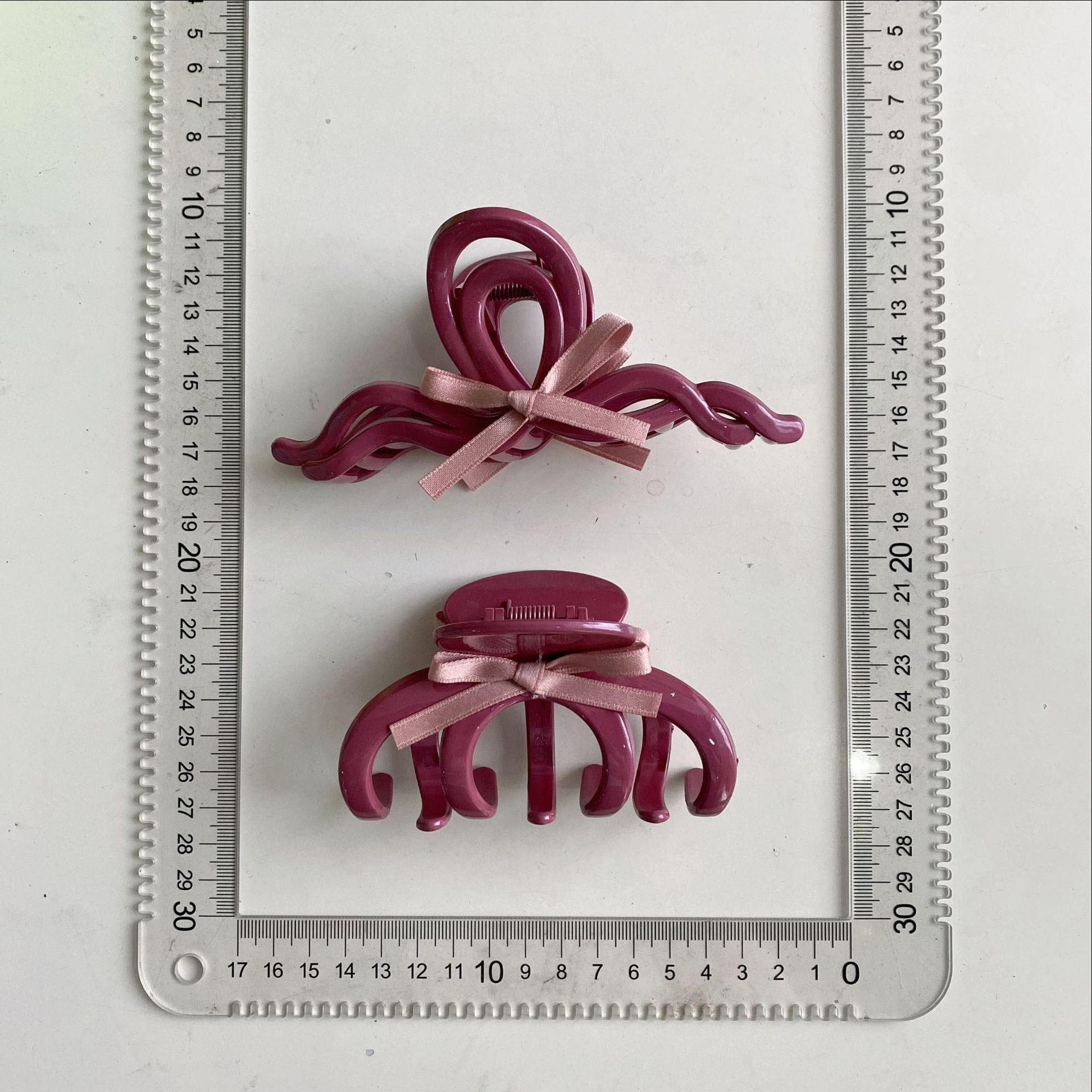 新款粉色丝带蝴蝶结玫红色几何发夹 韩版抓夹百搭发饰