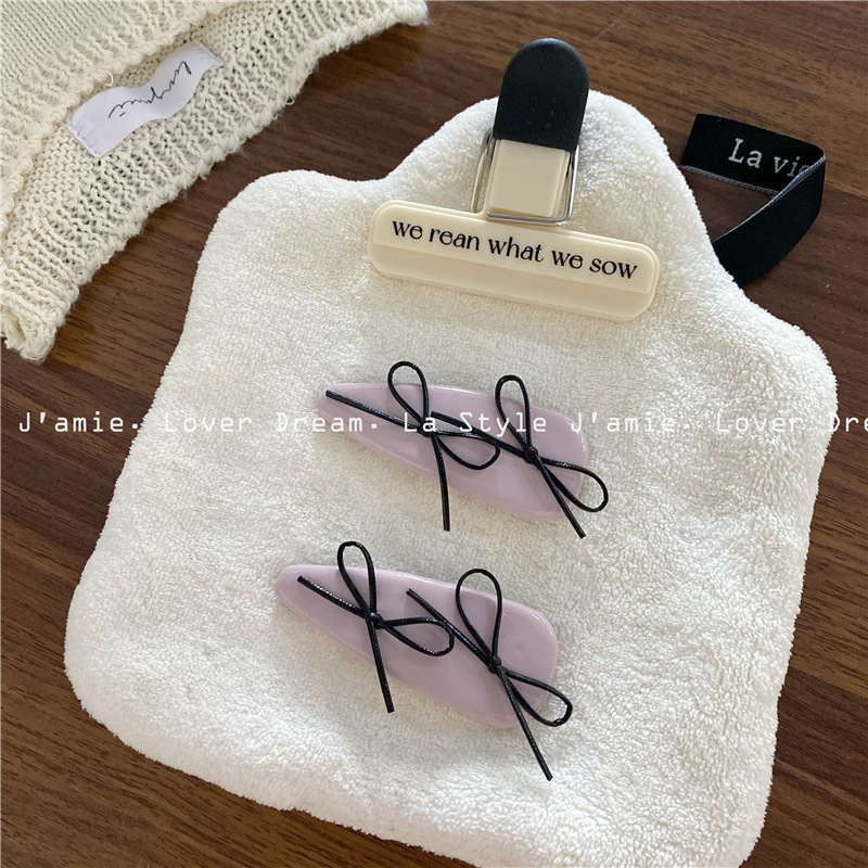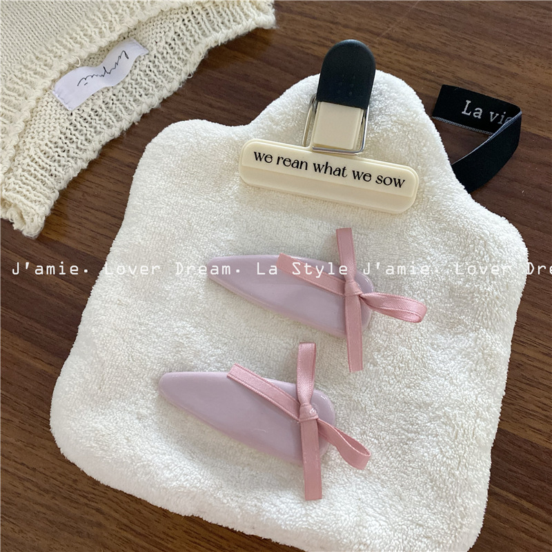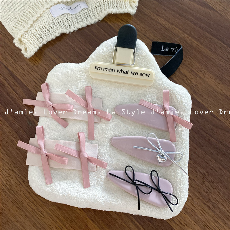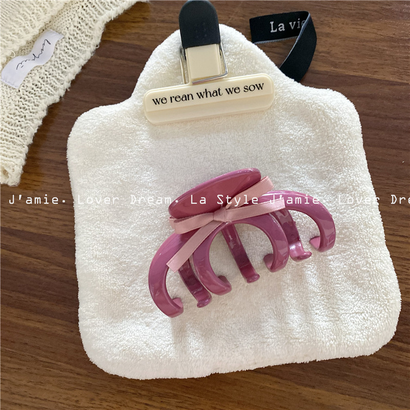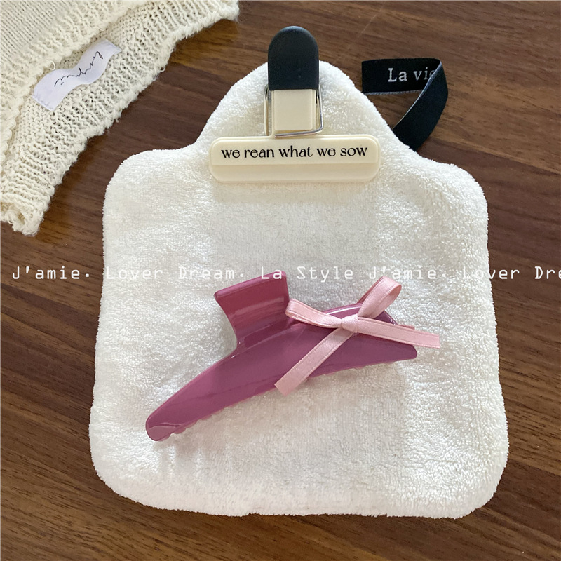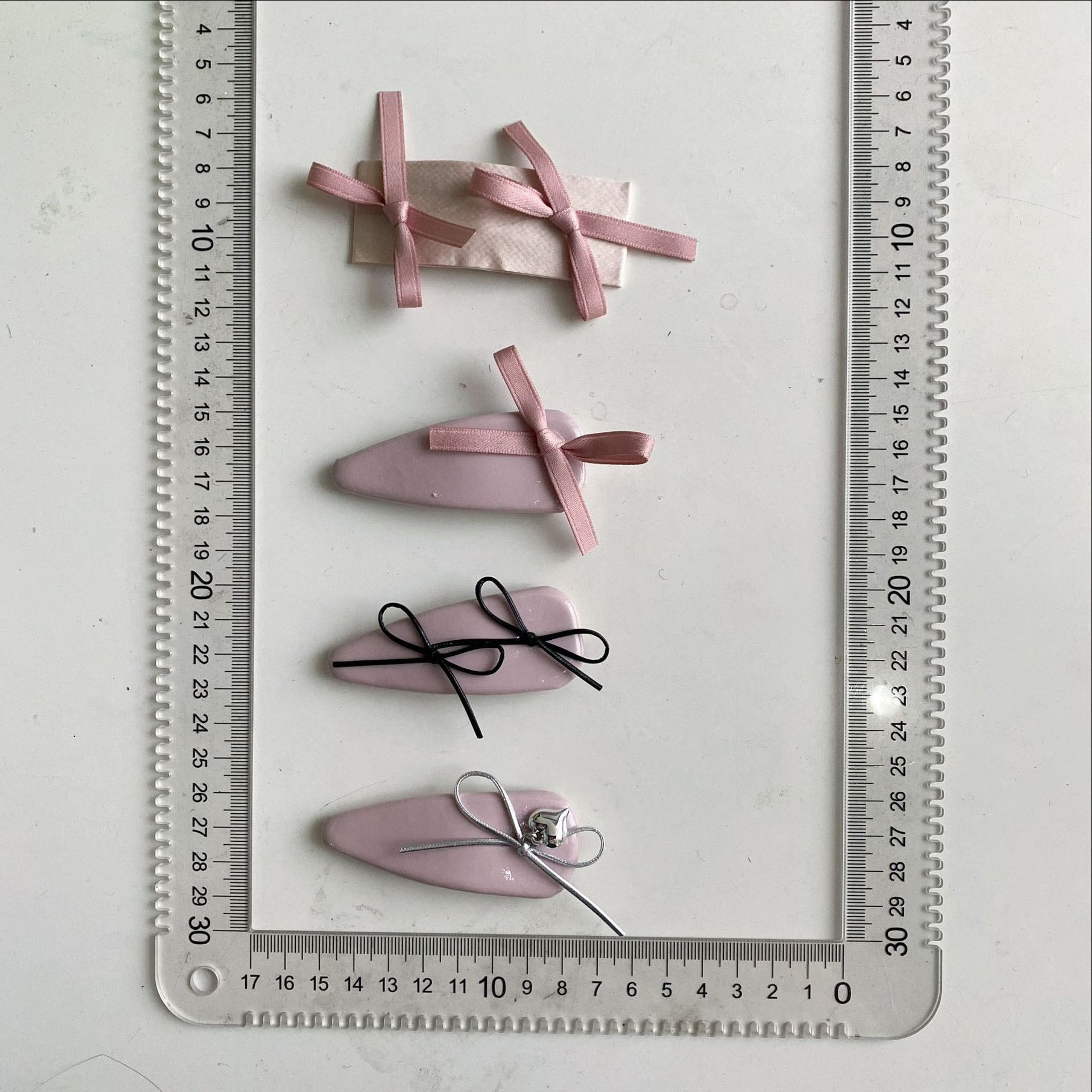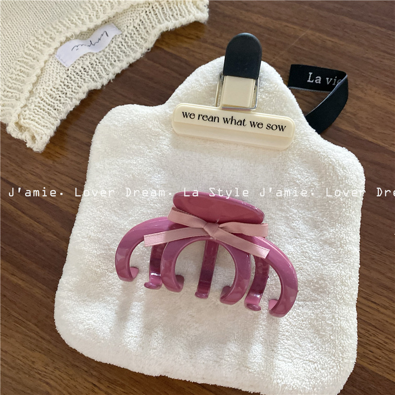 新款粉色丝带蝴蝶结玫红色几何发夹 韩版抓夹百搭发饰