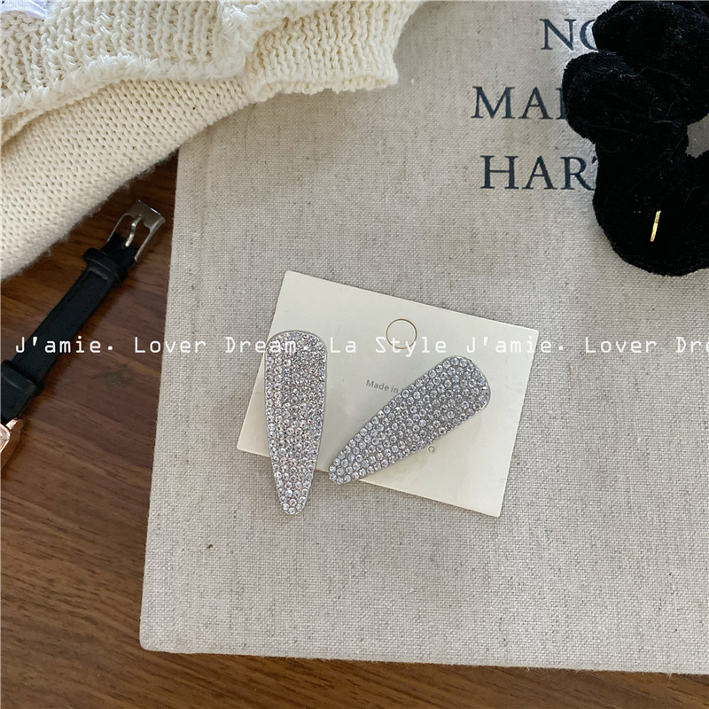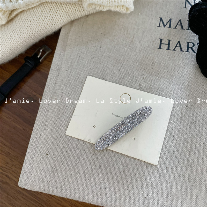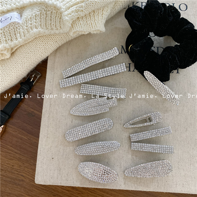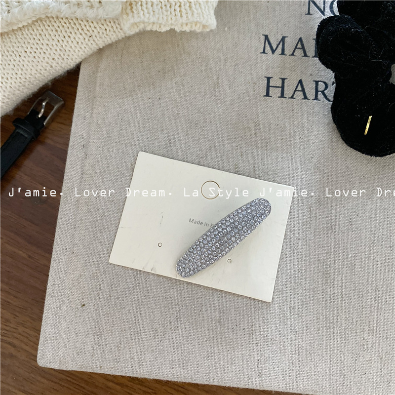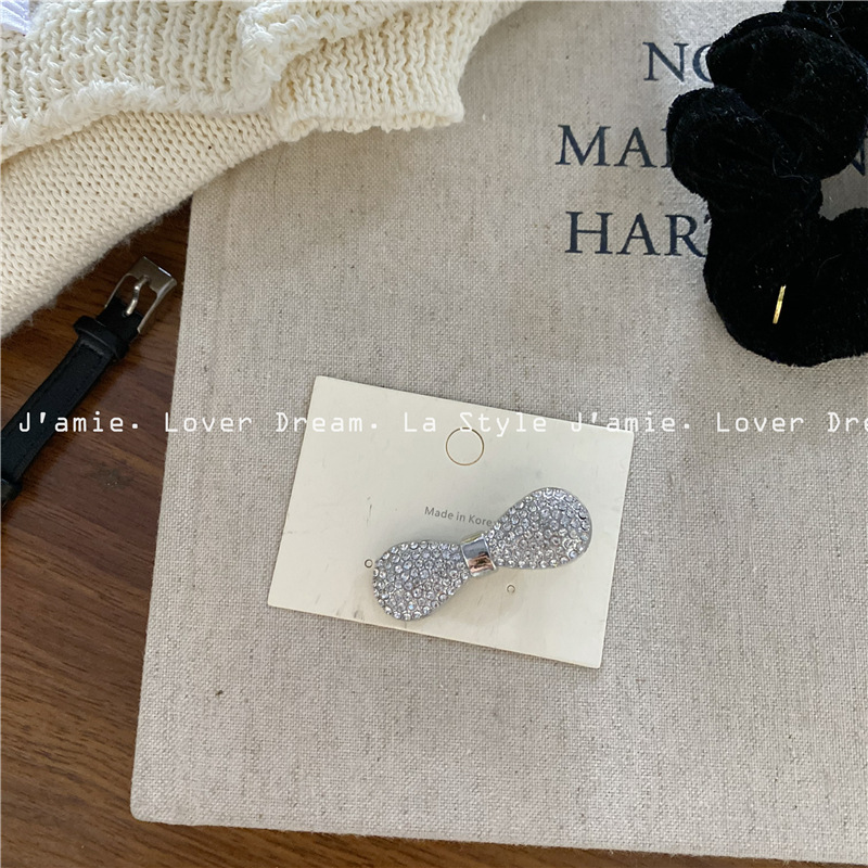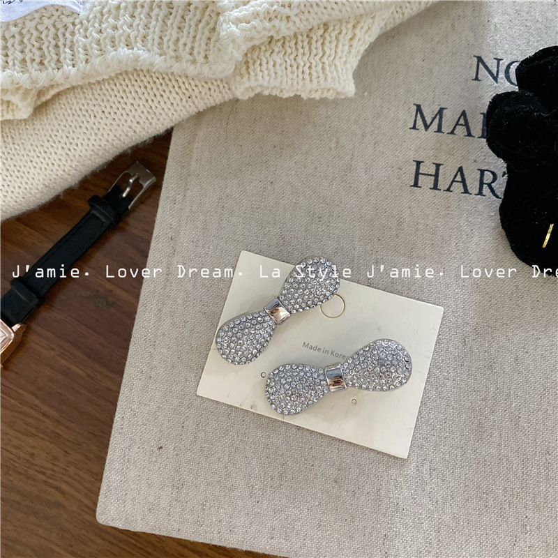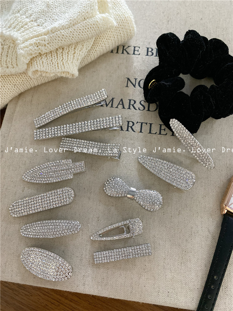 新款透明水钻满钻蝴蝶结银色鸭嘴夹发夹金属刘海夹发饰
