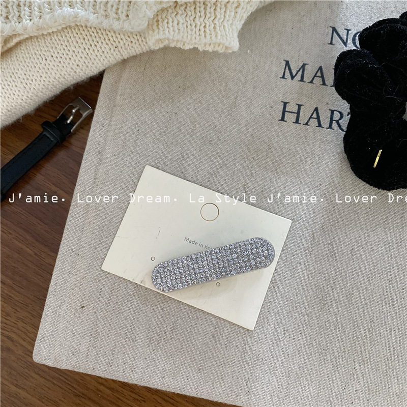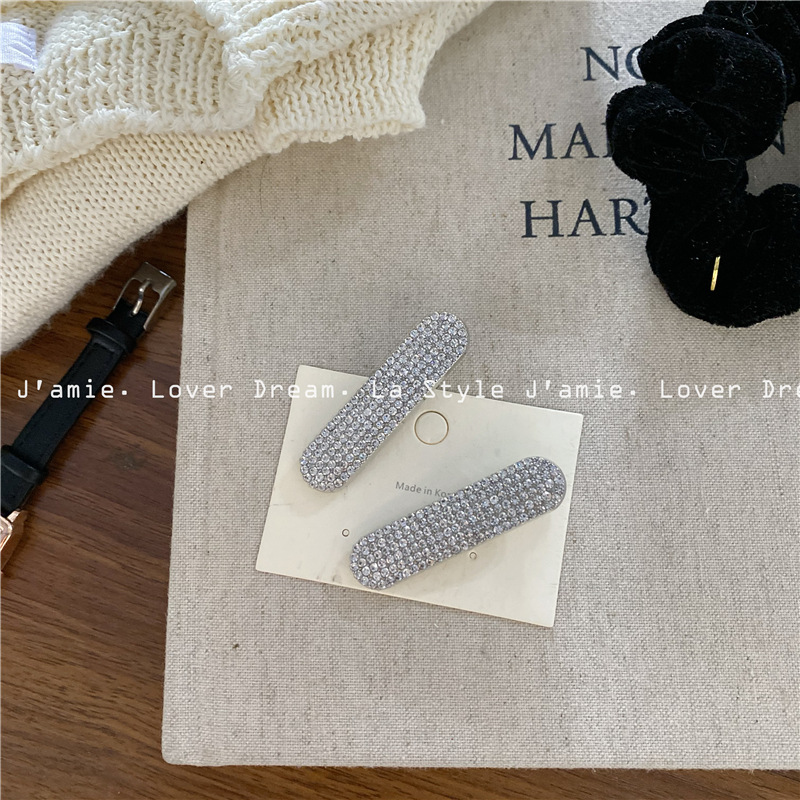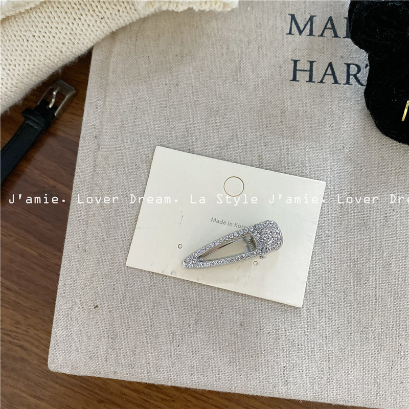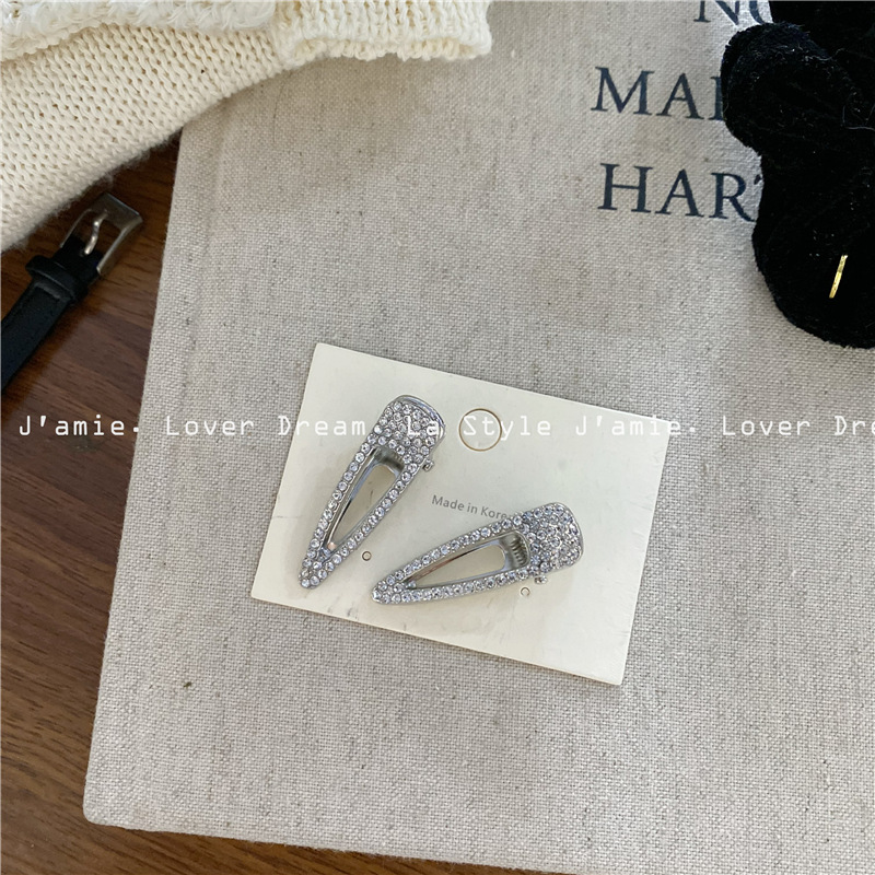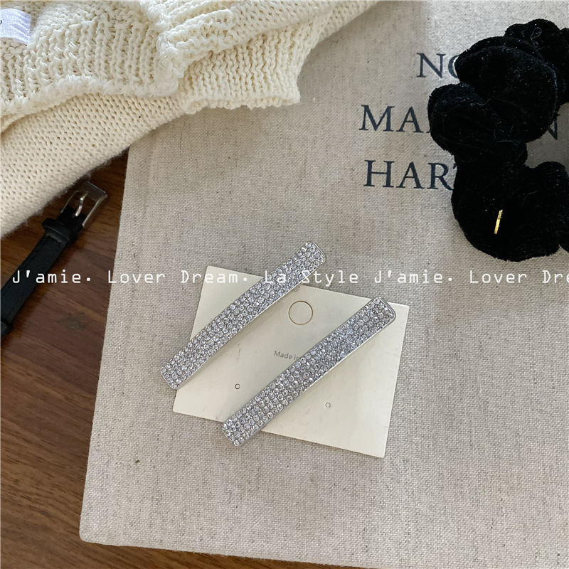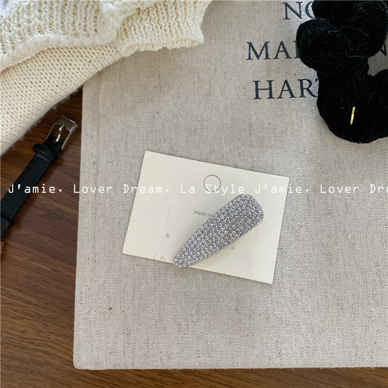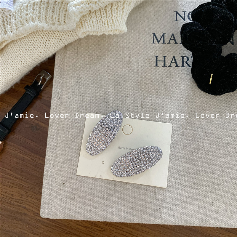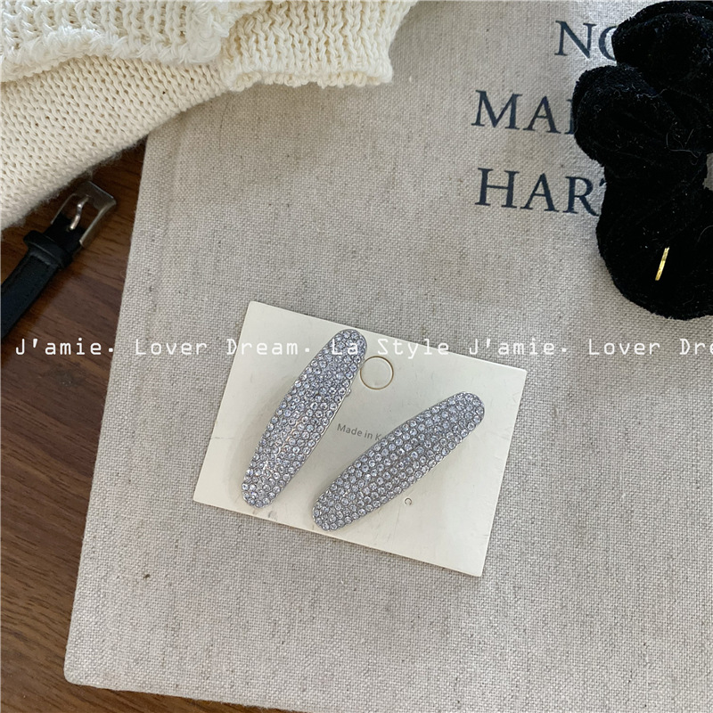 新款透明水钻满钻蝴蝶结银色鸭嘴夹发夹金属刘海夹发饰