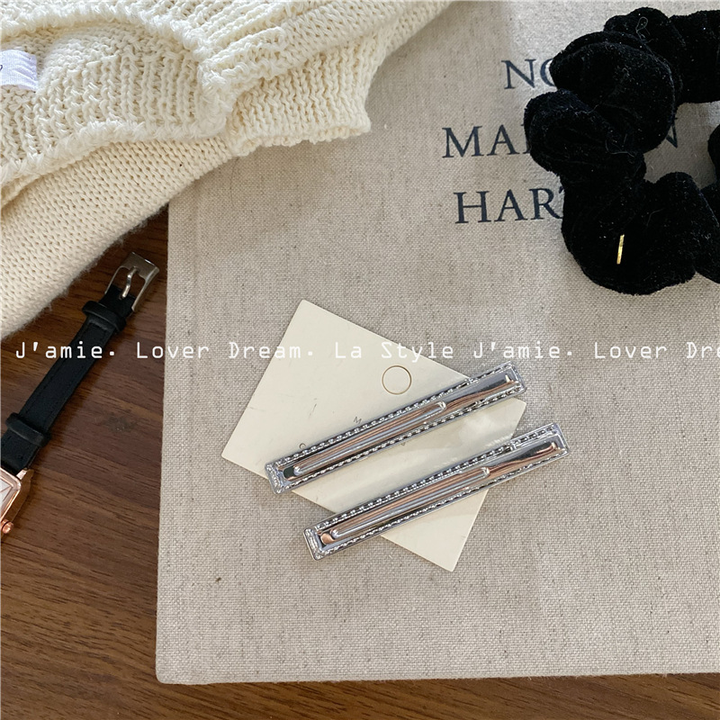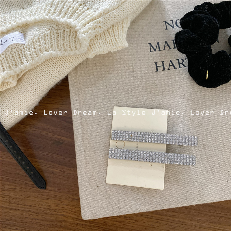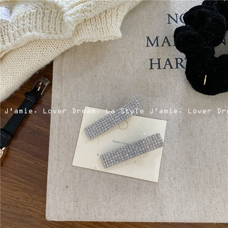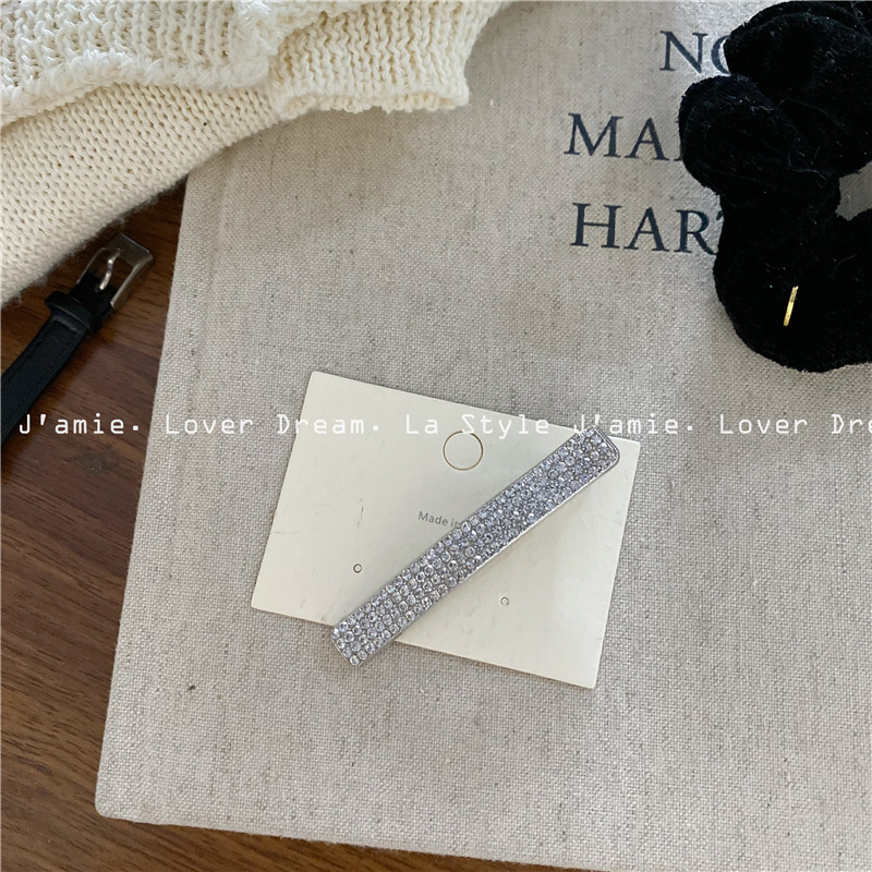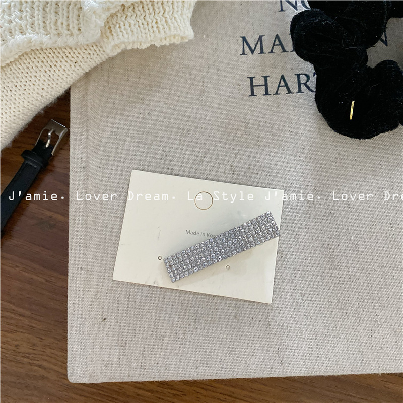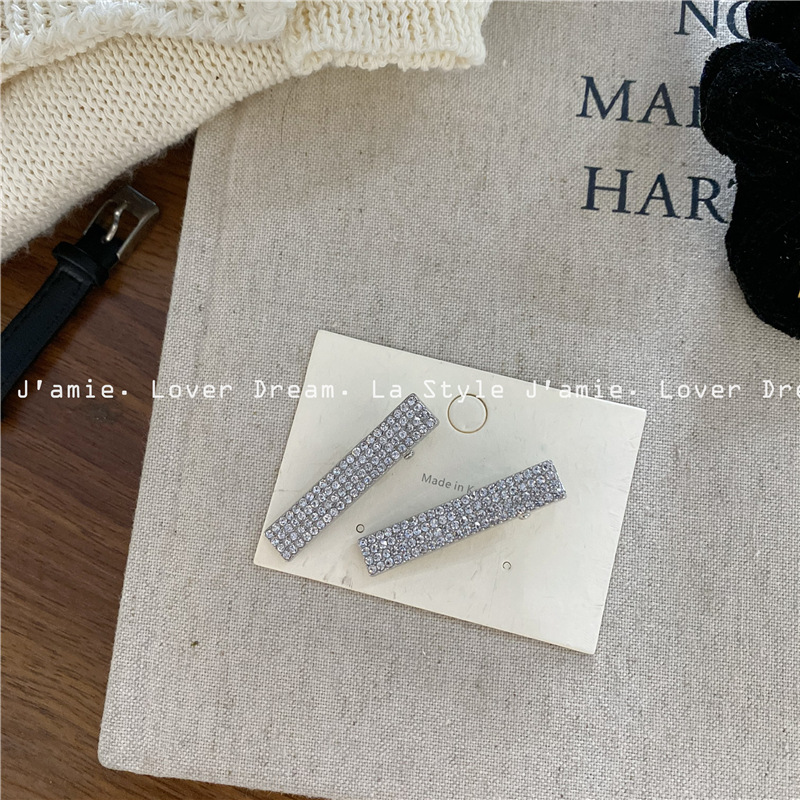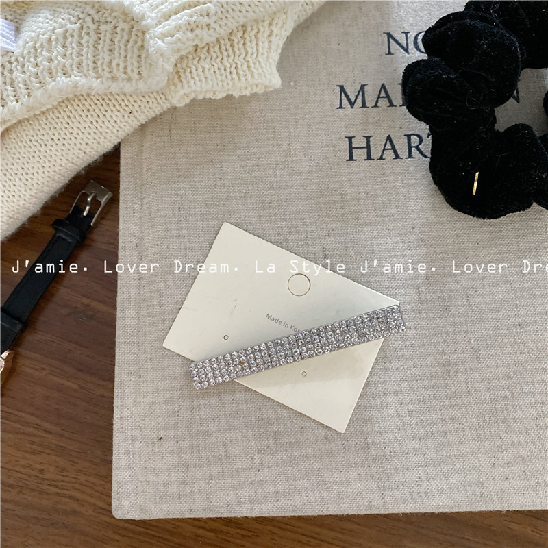 新款透明水钻满钻蝴蝶结银色鸭嘴夹发夹金属刘海夹发饰