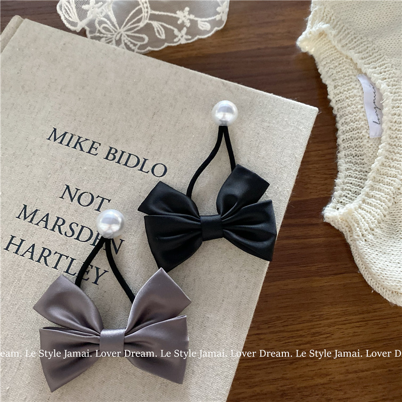 韩国新款珍珠蝴蝶结高弹力皮筋发圈 高马尾头绳头饰发饰
