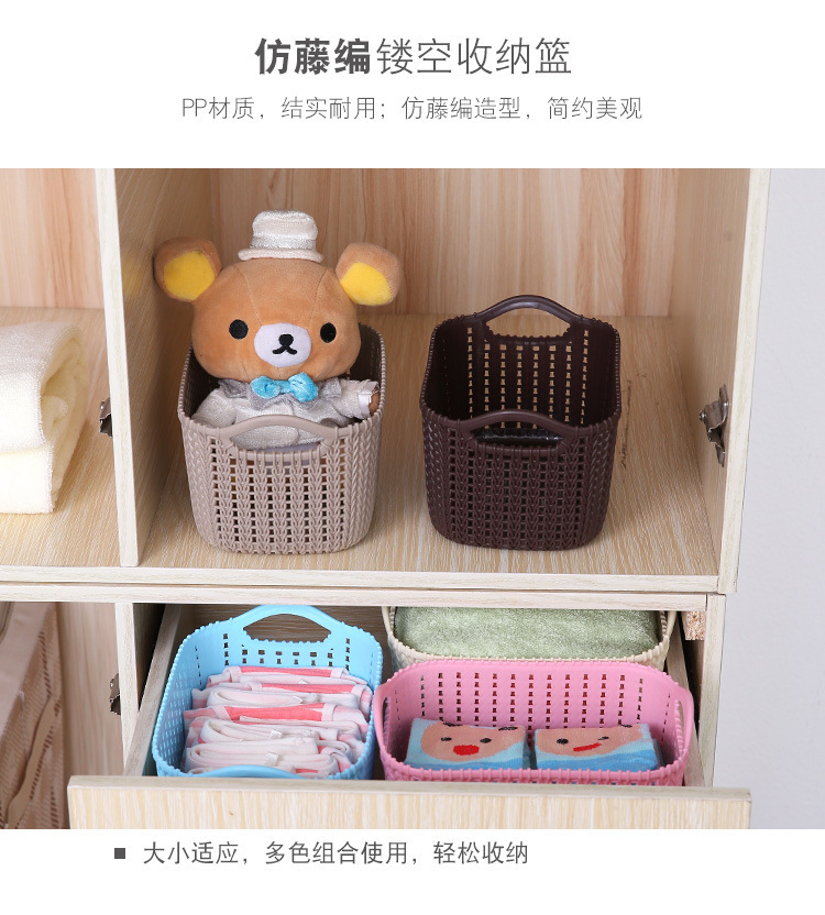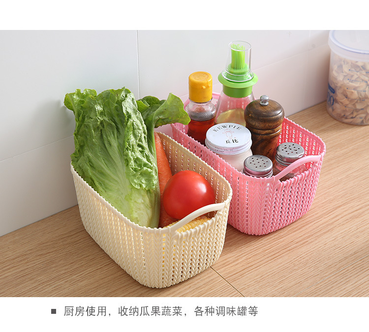 收纳筐塑料编织手提篮桌面杂物摆放编织手提筐洗澡杂物收纳篮