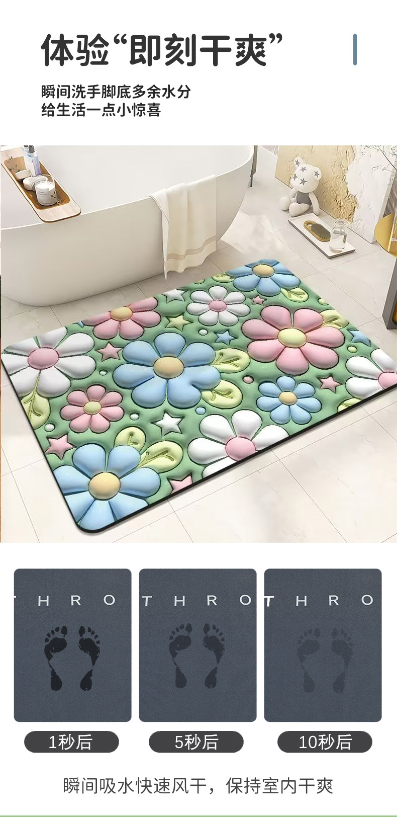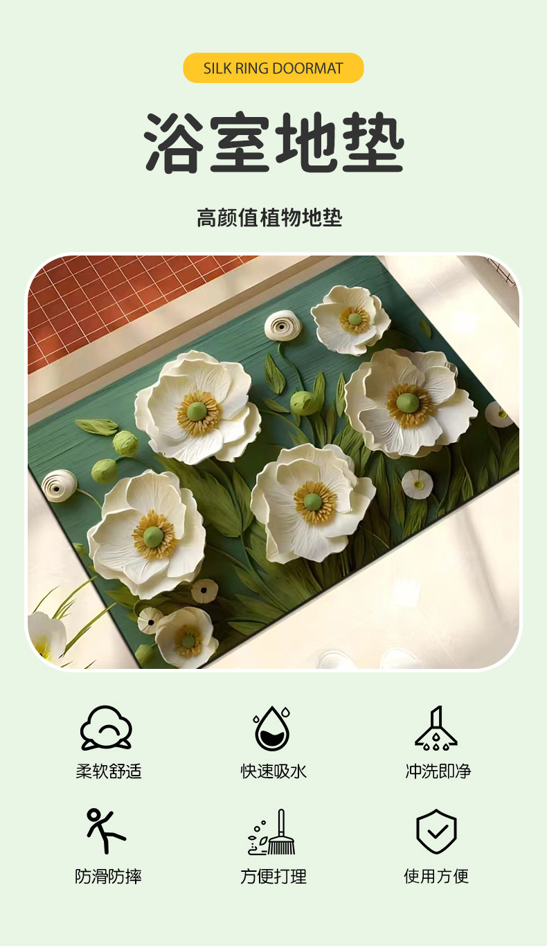浴室硅藻泥吸水地垫 卡通厕所卫生间脚垫厨房易冲洗门口速干地垫