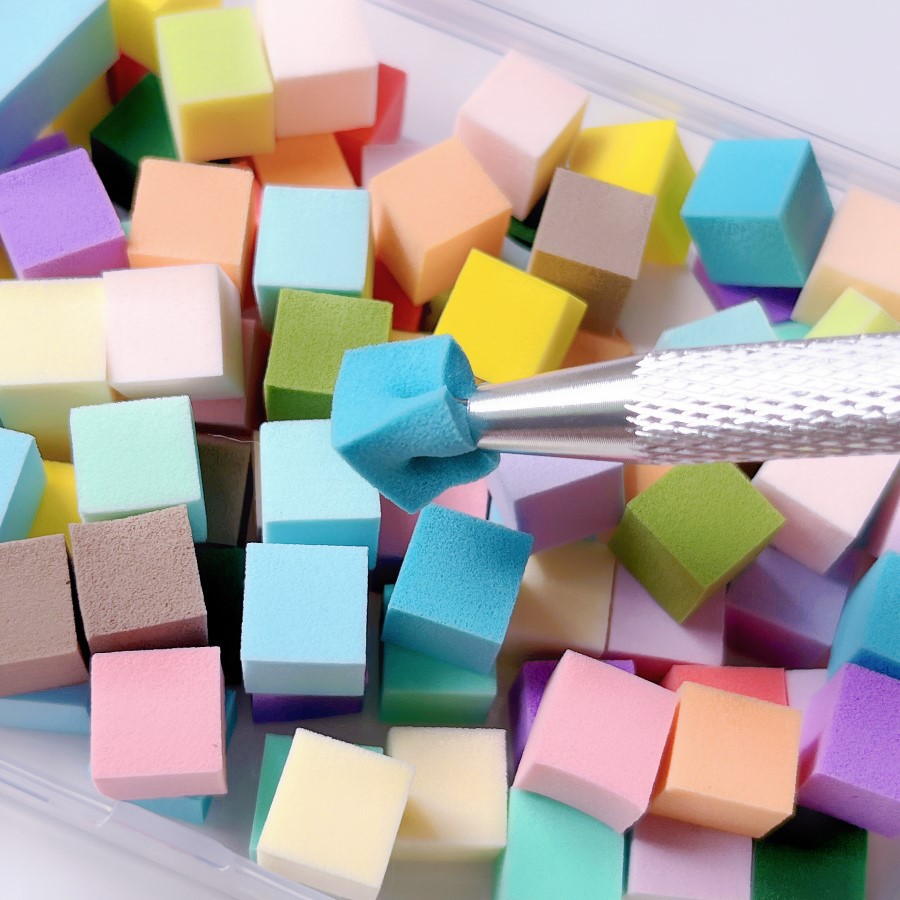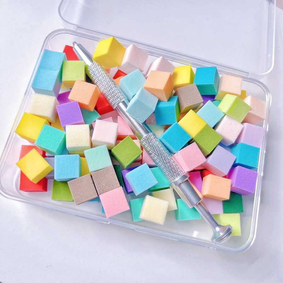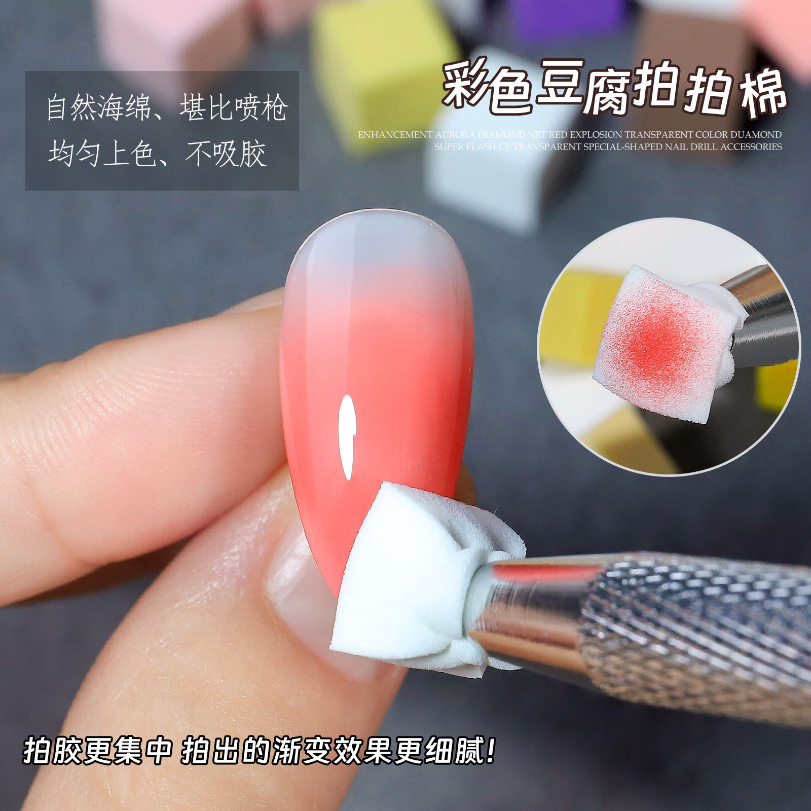 盒装拍拍棉100pcs美甲晕染海绵迷你豆腐块拍拍海绵彩色海绵抓抓笔
