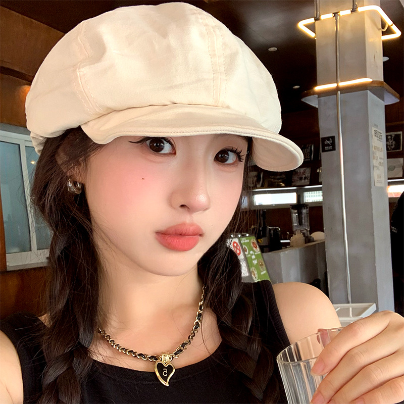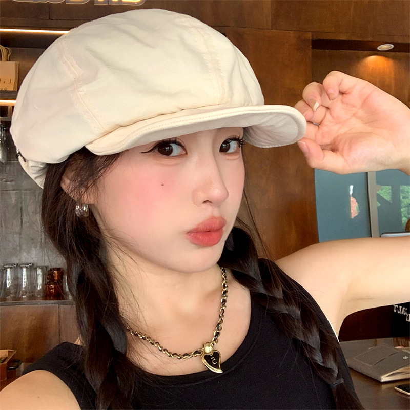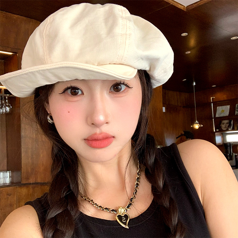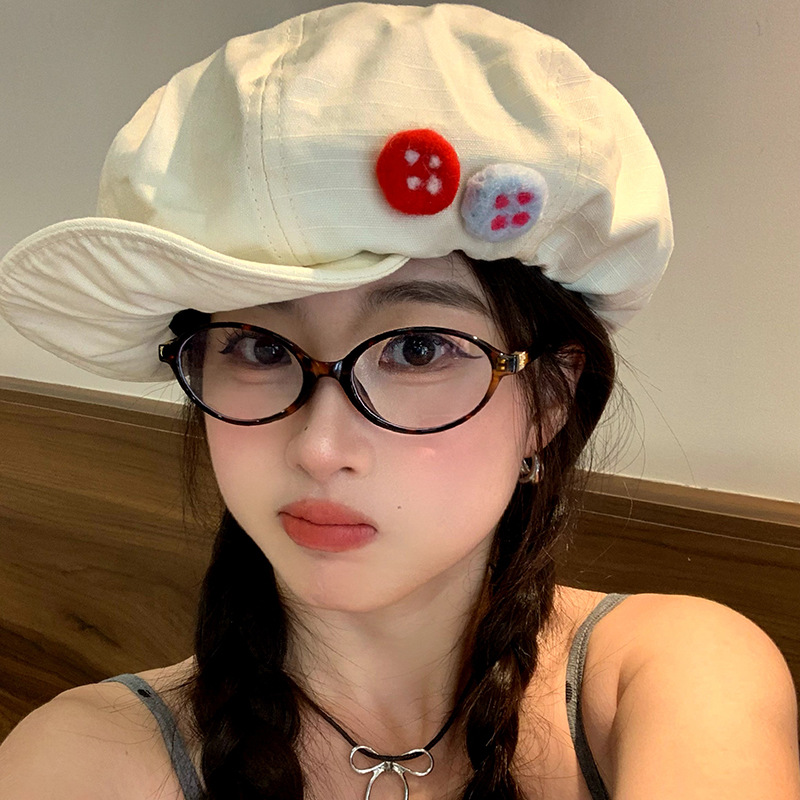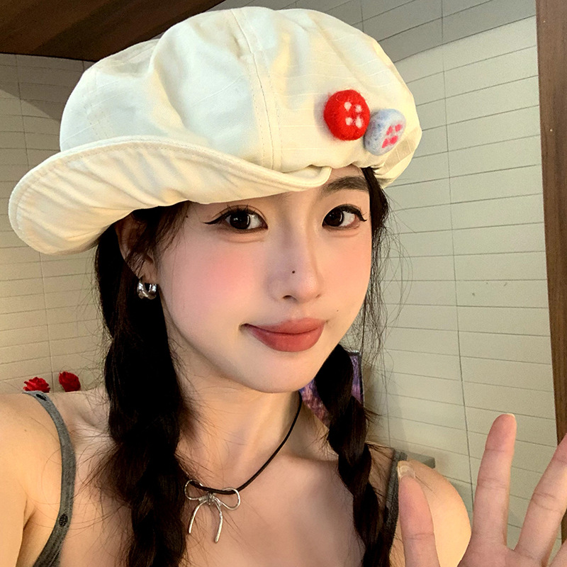 一帽五戴日系复古棉麻八角云朵帽夏季彩色纽扣前进帽显脸小贝雷帽