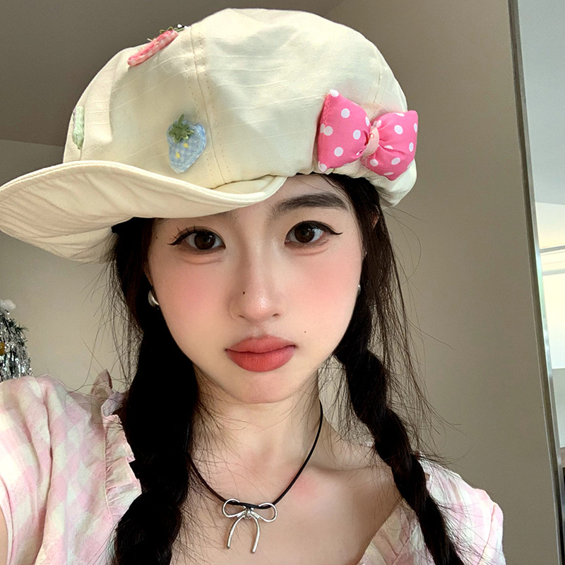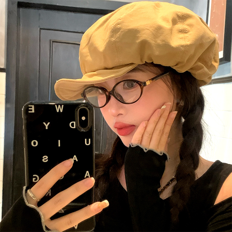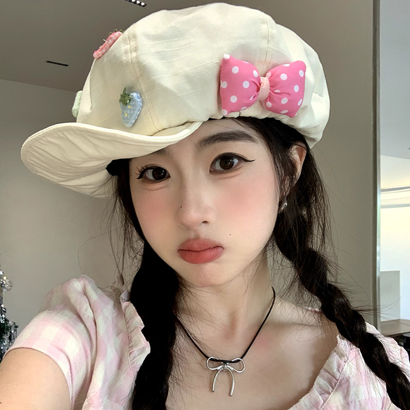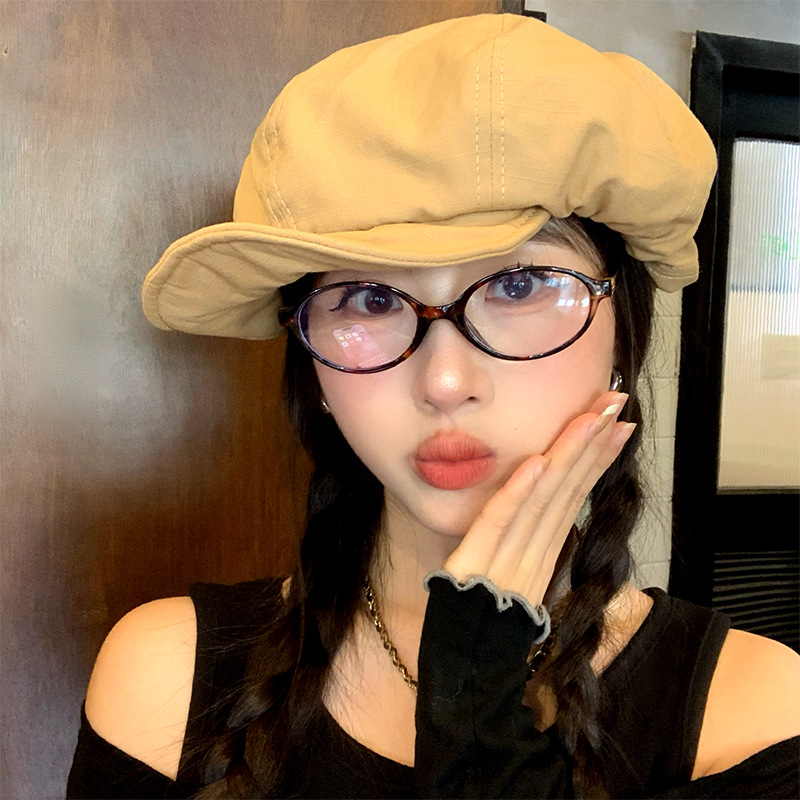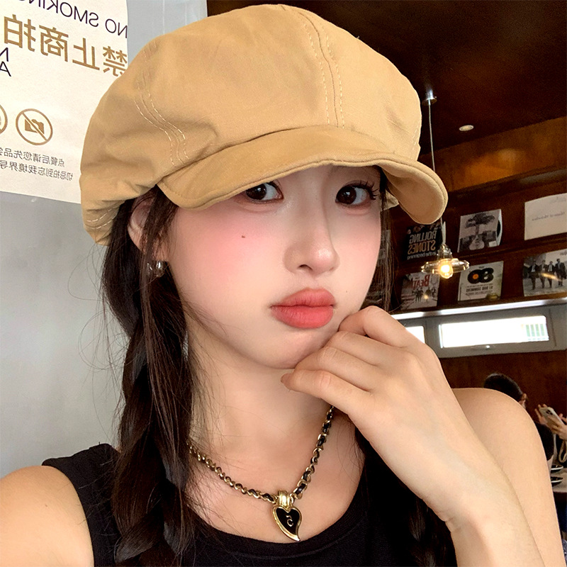 一帽五戴日系复古棉麻八角云朵帽夏季彩色纽扣前进帽显脸小贝雷帽