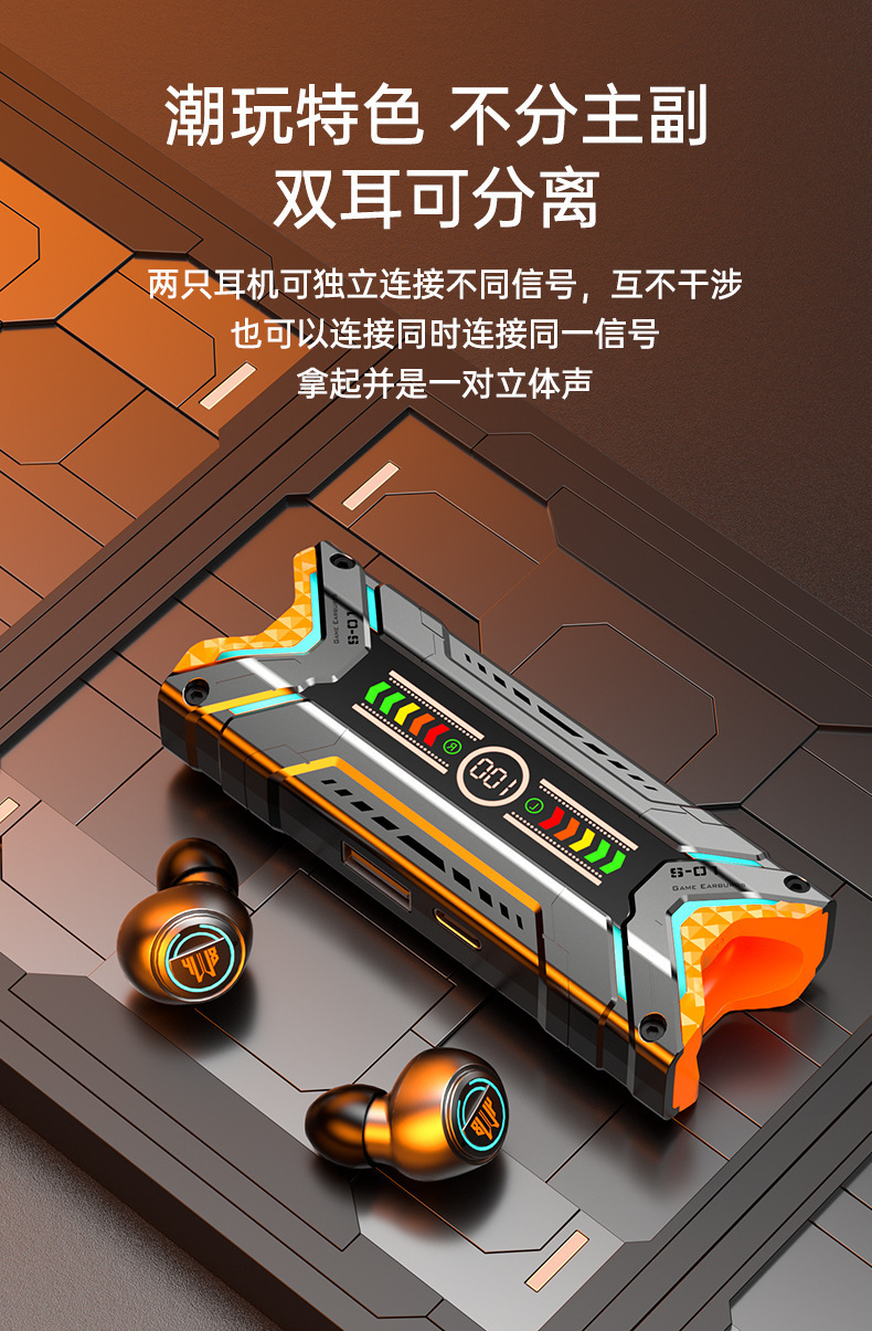 机甲无线蓝牙耳机跨境新款私模M48游戏电竞TWS降噪低延迟数显电量