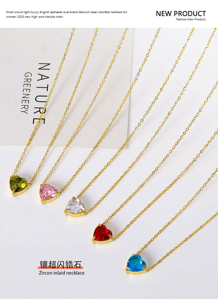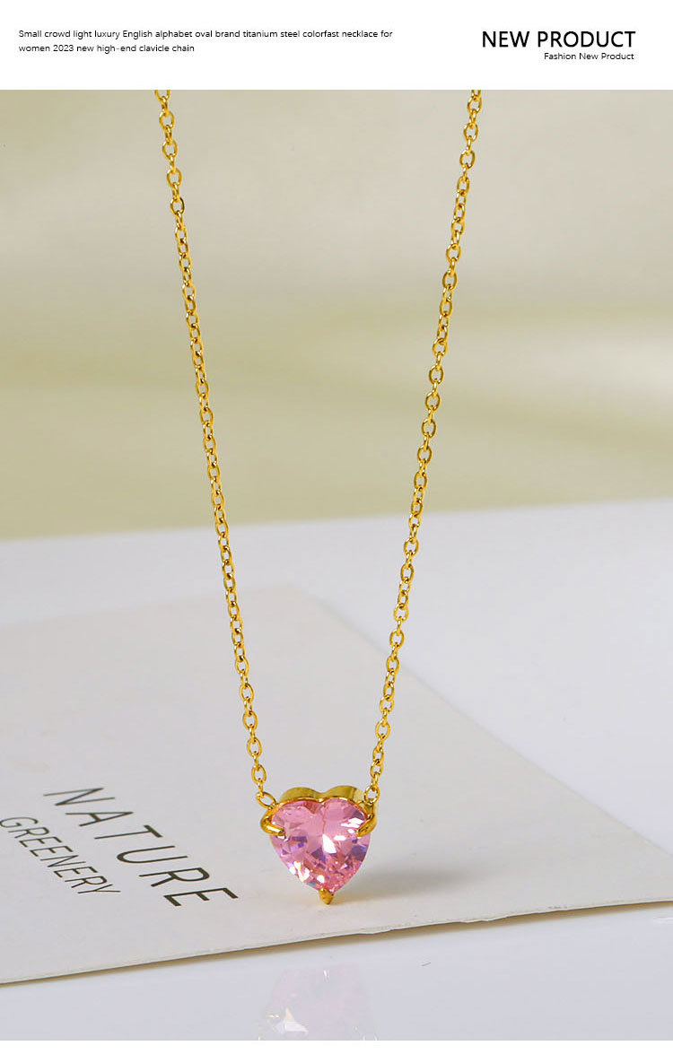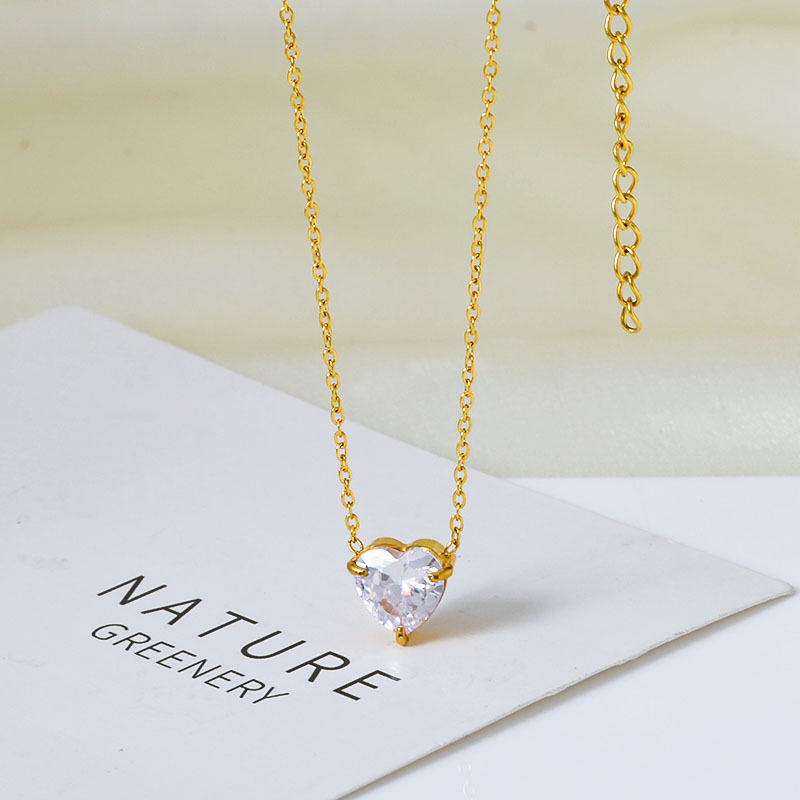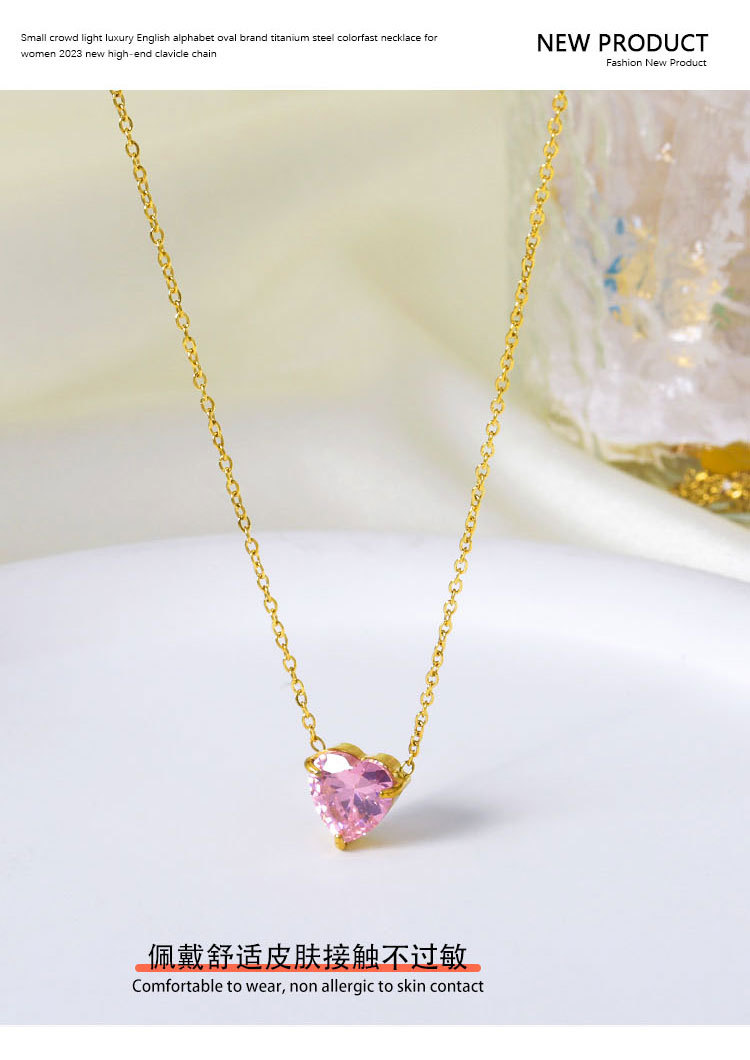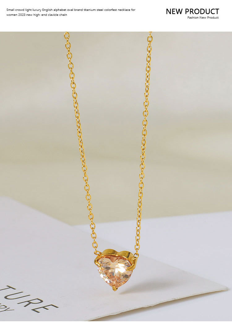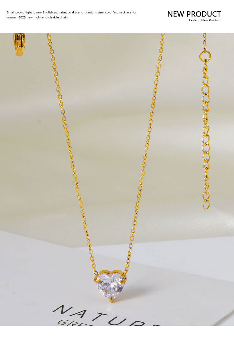 钛钢外贸跨境简约锆石心形冷淡风项链女款高级感百搭18k不掉色