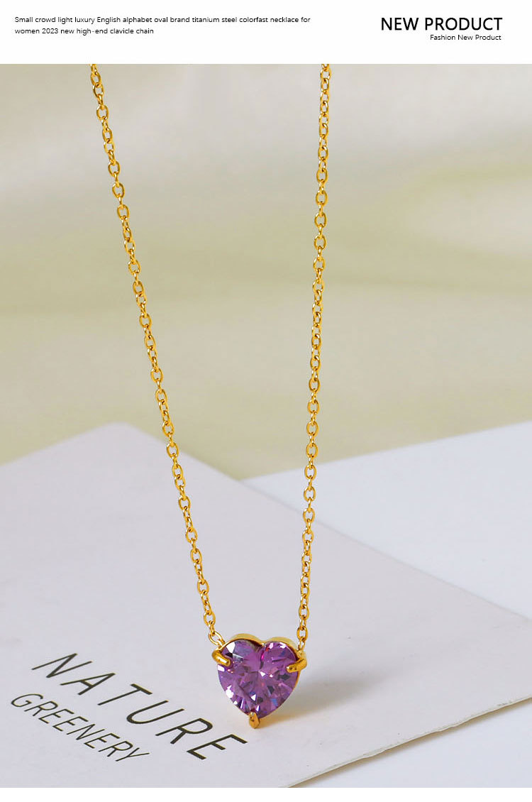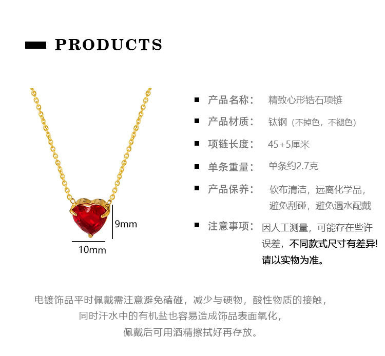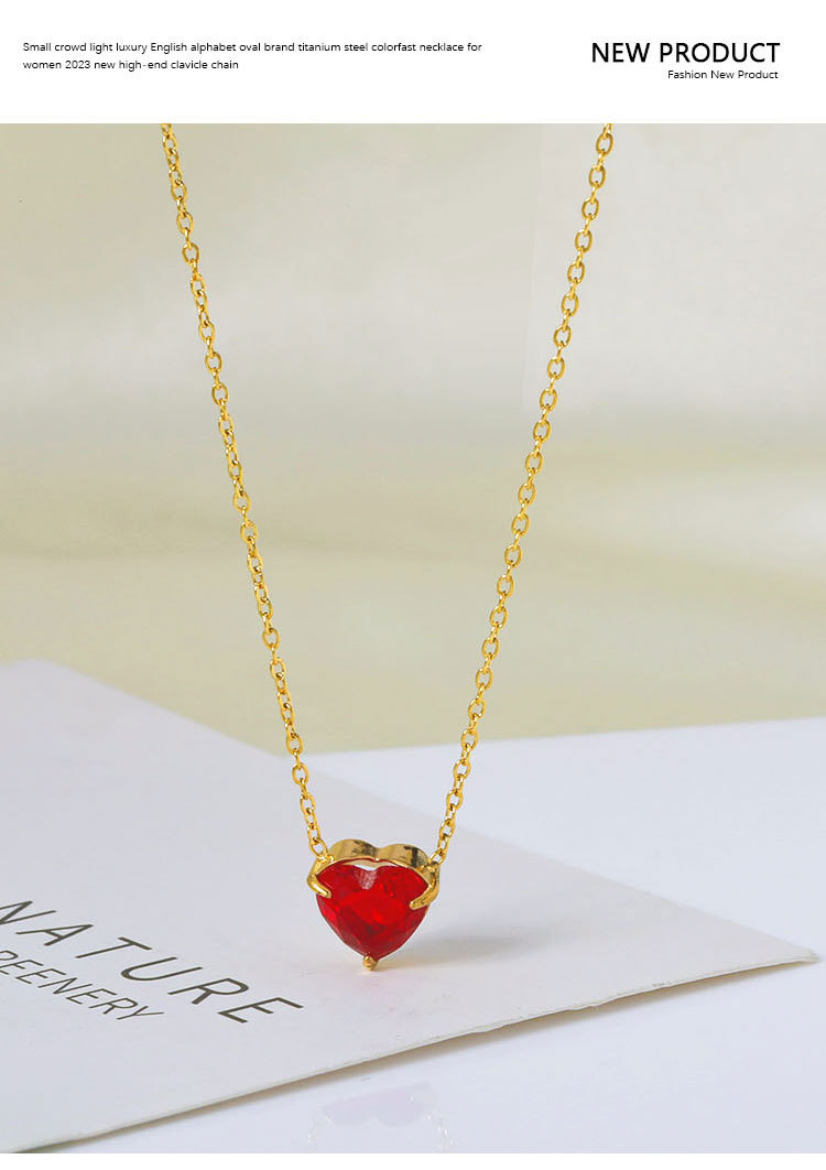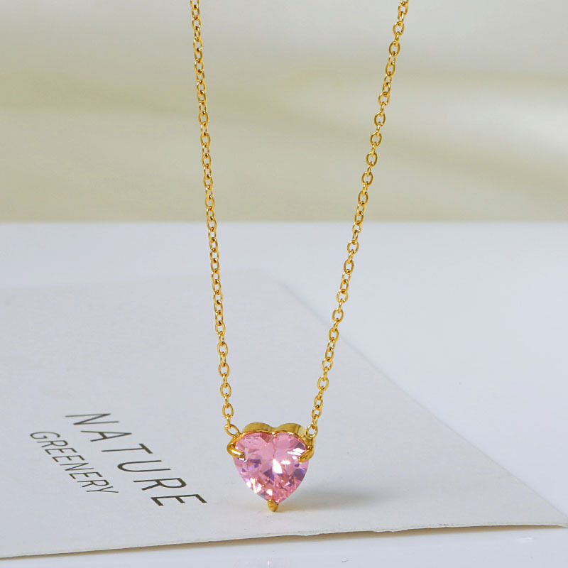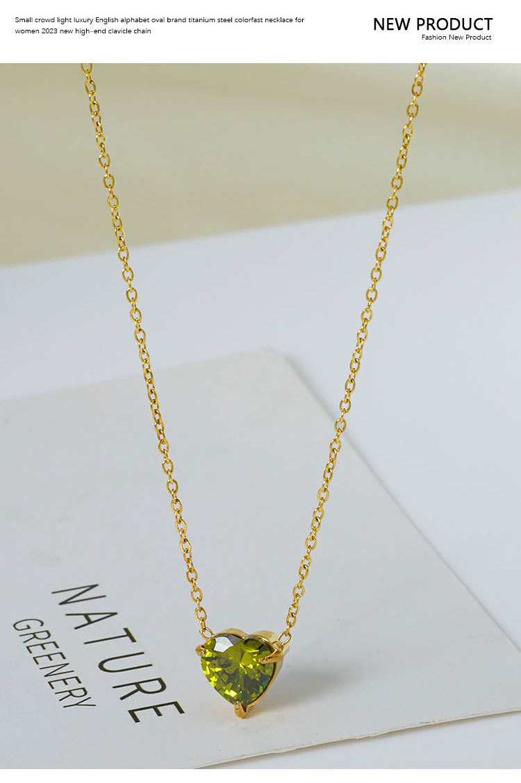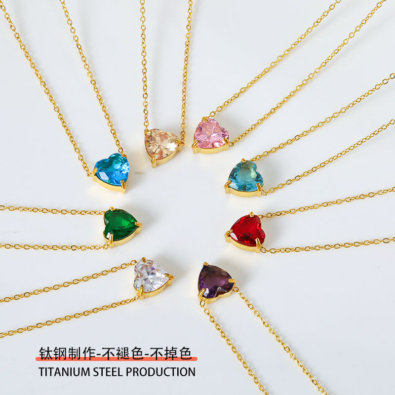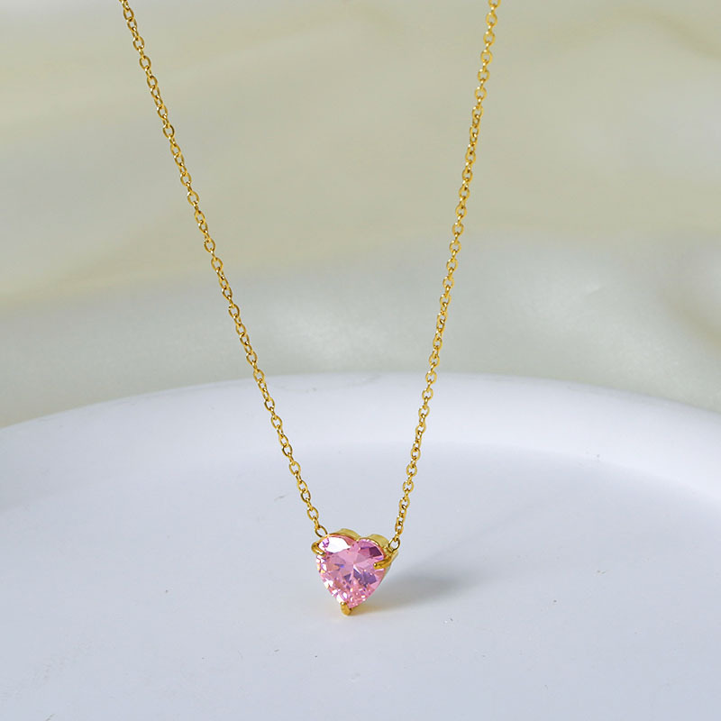钛钢外贸跨境简约锆石心形冷淡风项链女款高级感百搭18k不掉色