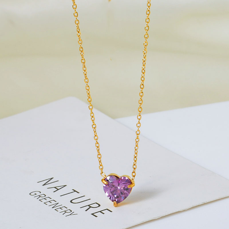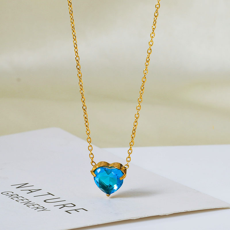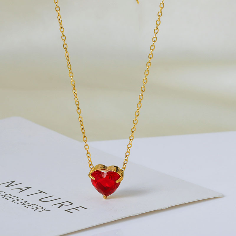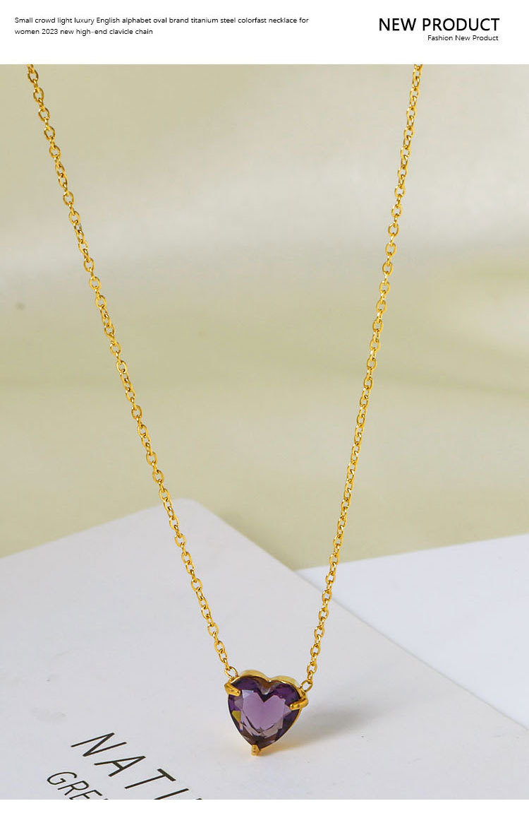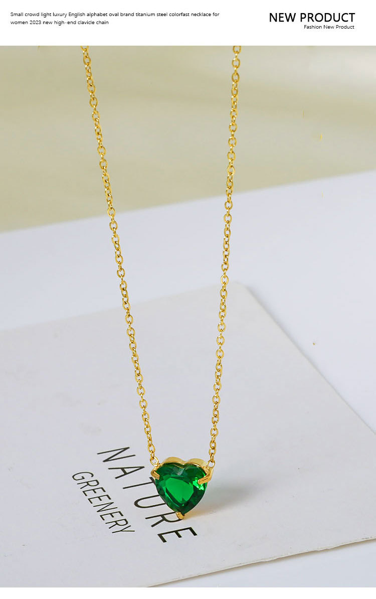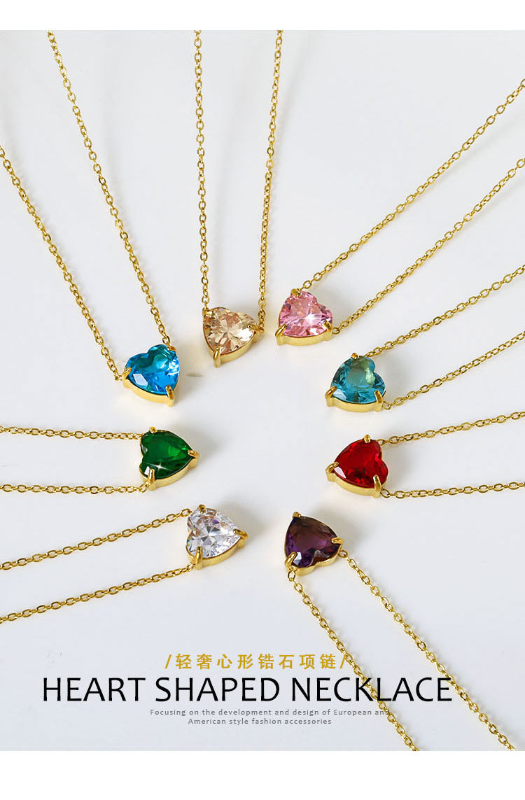 钛钢外贸跨境简约锆石心形冷淡风项链女款高级感百搭18k不掉色